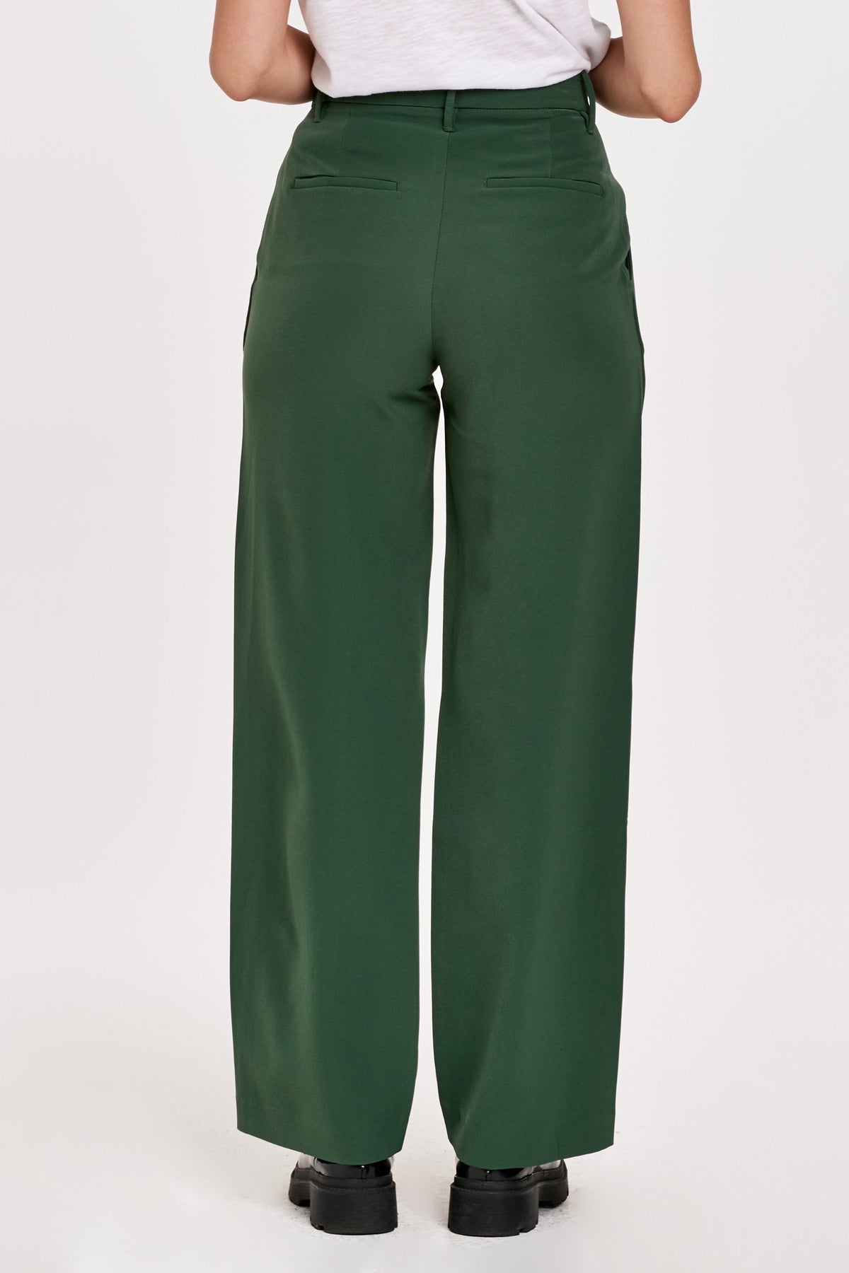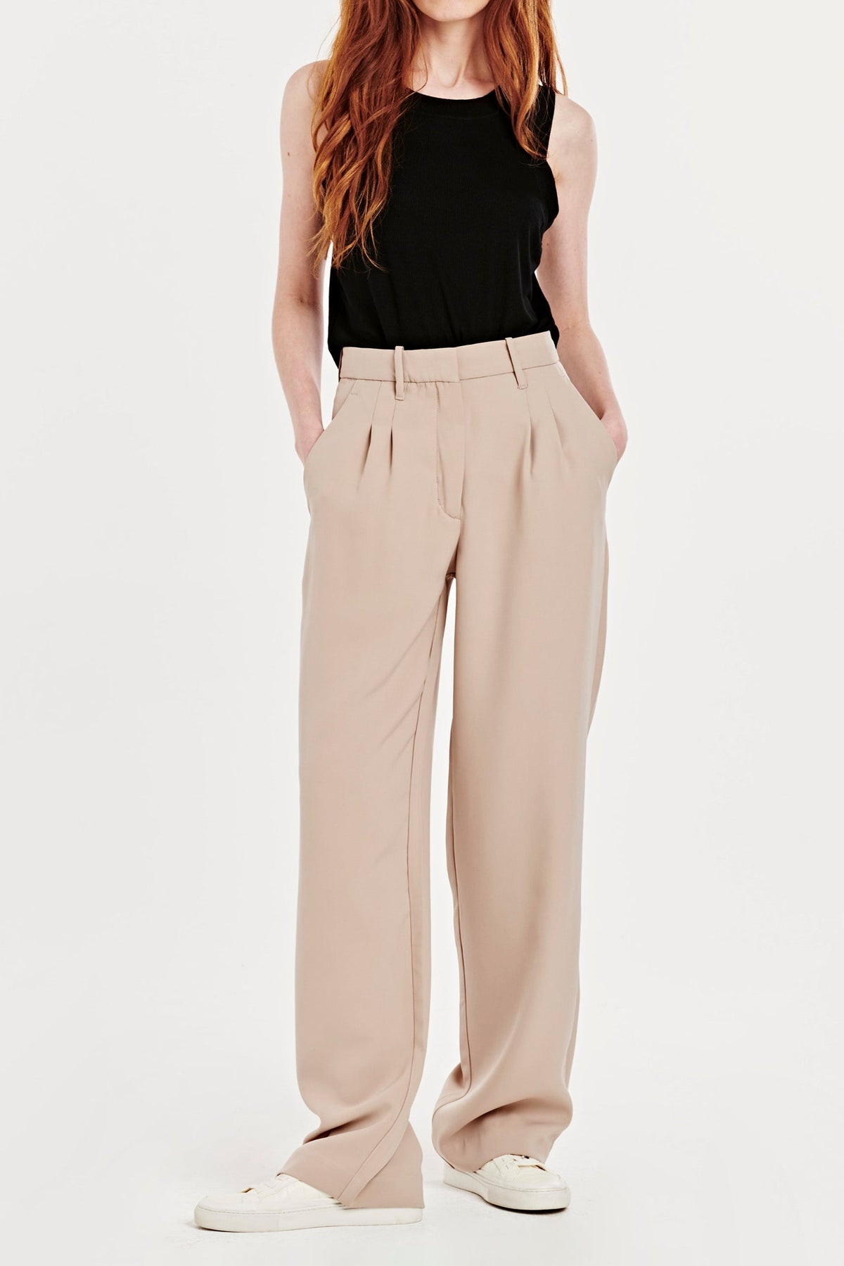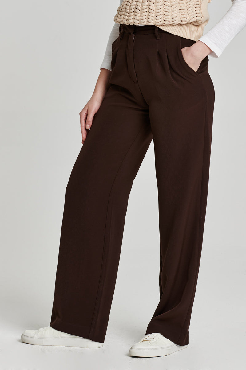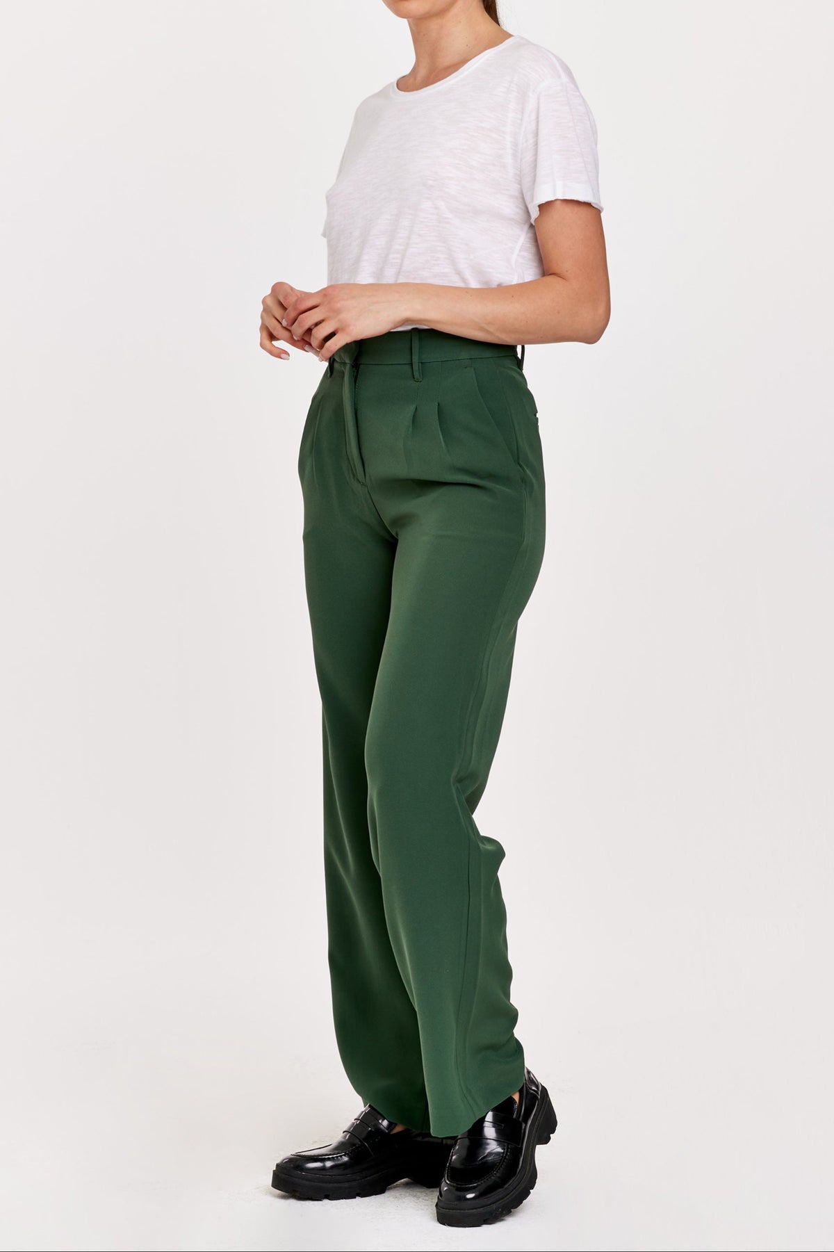 ADELAIDE high rise wide leg pant with belt loops, trouser cut with front zipper and button closure, side slant & welt back pockets, front pleat and back dart for lift support. Solid color woven on relaxed fit. The paramount option for comfort and utility, the impeccable fit for any life styling.