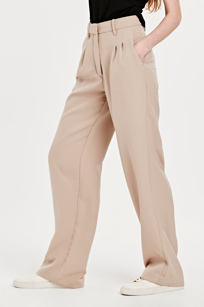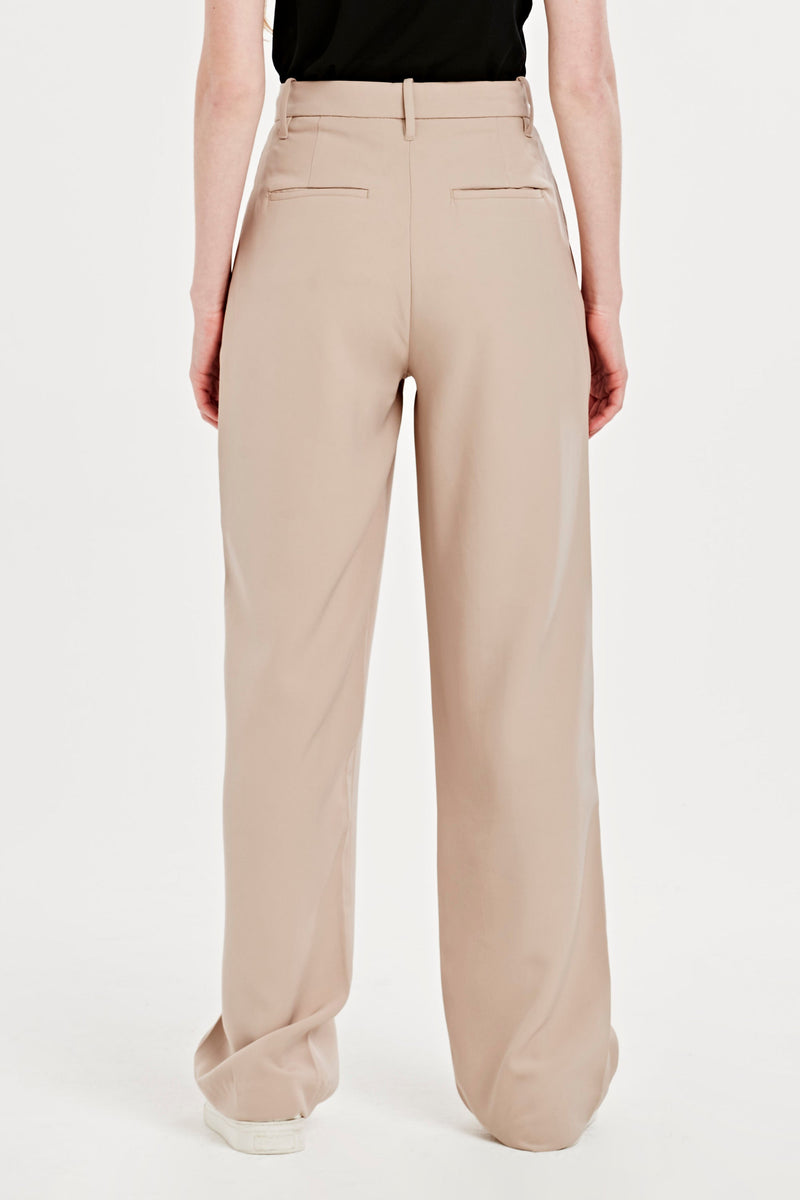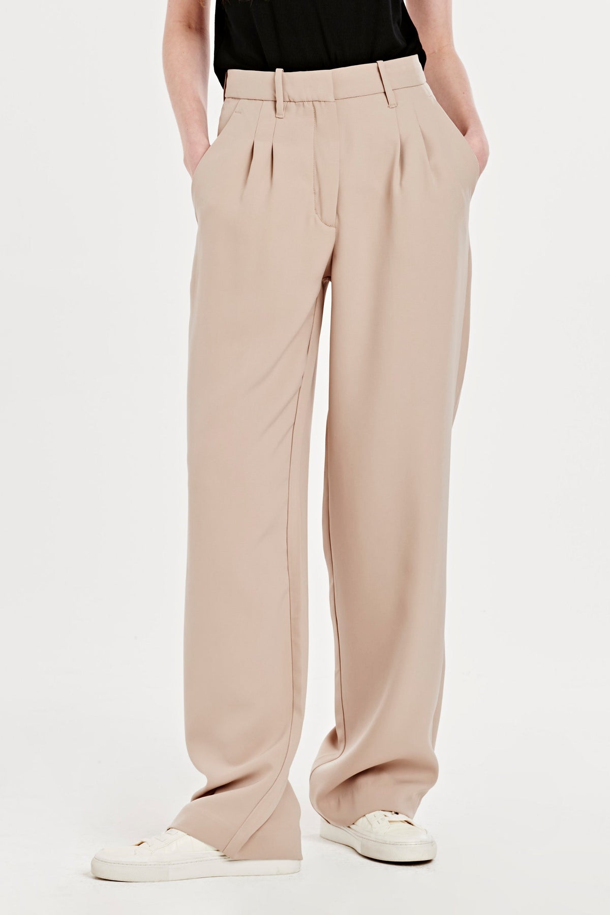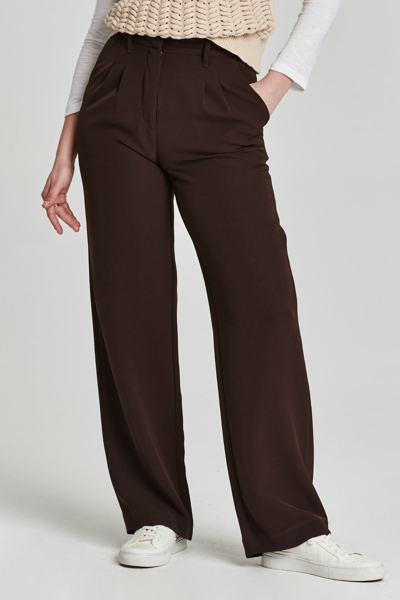 ADELAIDE high rise wide leg pant with belt loops, trouser cut with front zipper and button closure, side slant & welt back pockets, front pleat and back dart for lift support. Solid color woven on relaxed fit. The paramount option for comfort and utility, the impeccable fit for any life styling.