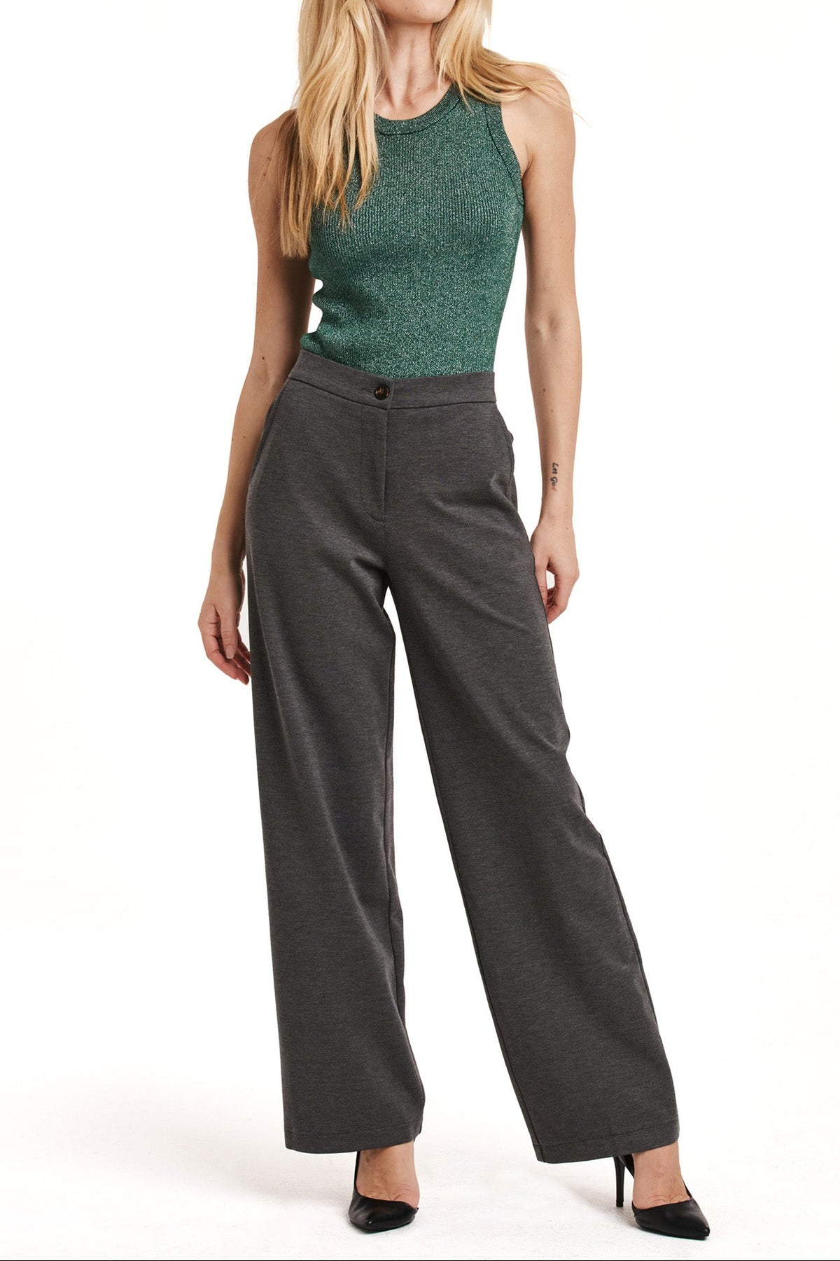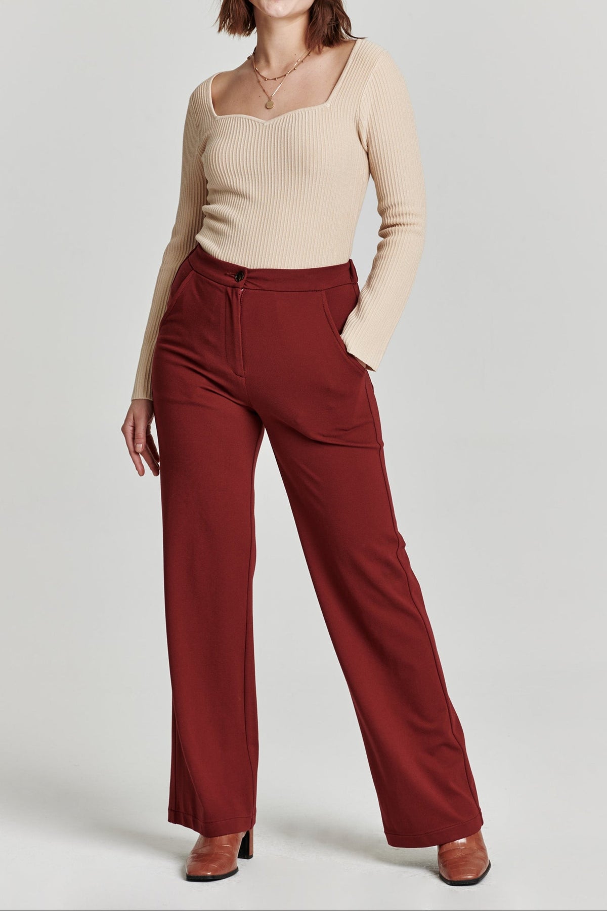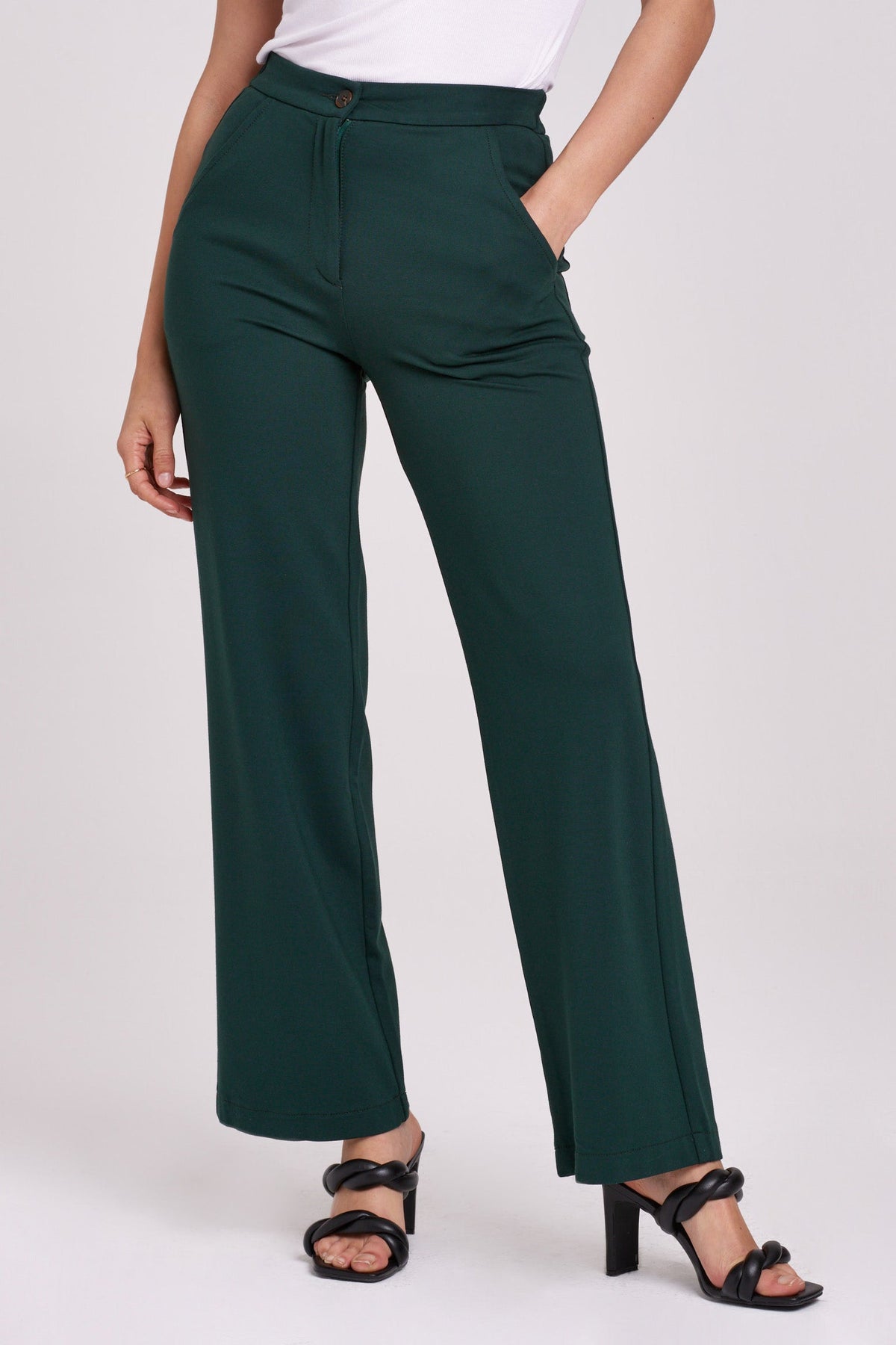 Effortless Biship wide leg pant combines style and comfort, featuring a flattering high rise and convenient front zipper and hook closure. With added comfort from the back elastic waist and practical side and back pockets, these pants are a must-have for any wardrobe.