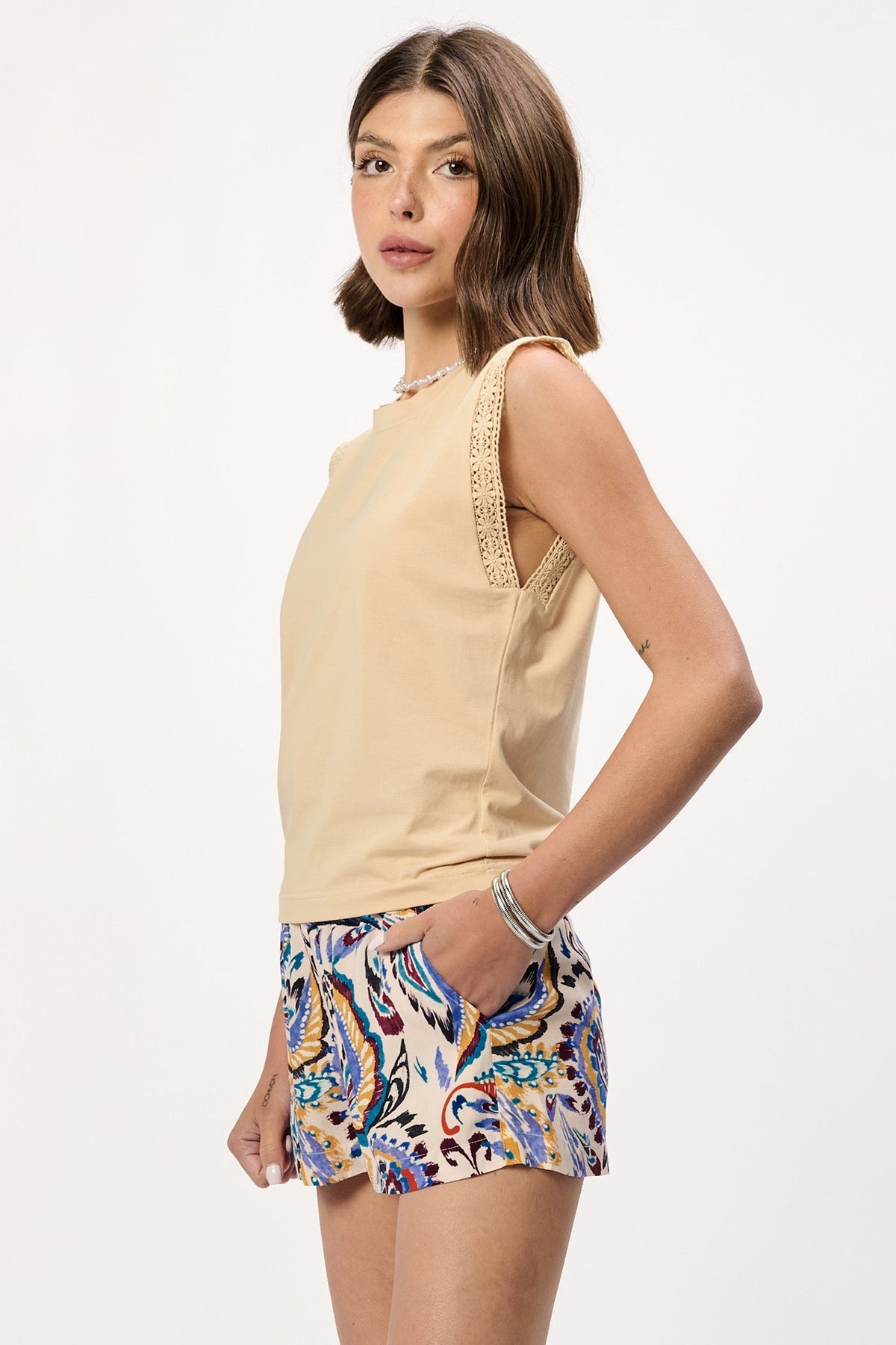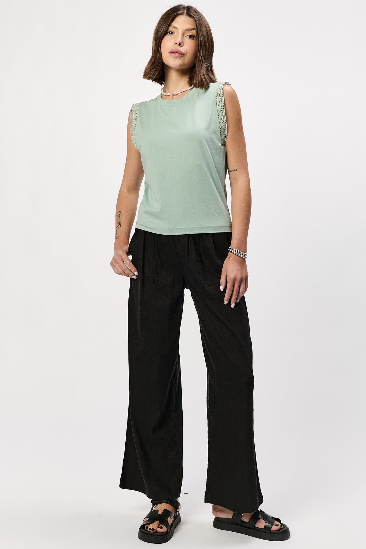 The fresh take on with our Bree lace trim muscle tee for unparalleled comfort and durability. This versatile classic silhouette features delicate lace detailing that adds a touch of elegance, ensuring you stay chic whether dressing up or down.