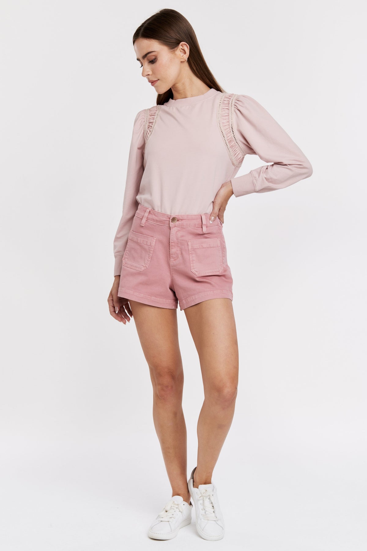 The Carlisle shorts - stylish, comfortable, and versatile. Flattering high-rise fit with functional patch pockets, perfect for any occasion. Stretchy and durable, a wardrobe must-have!