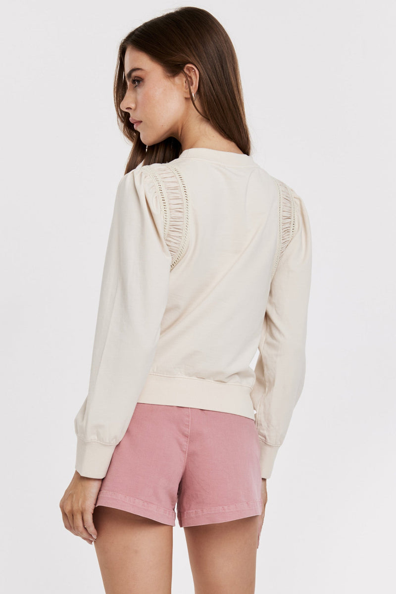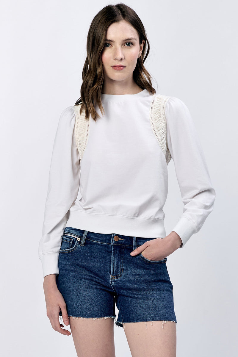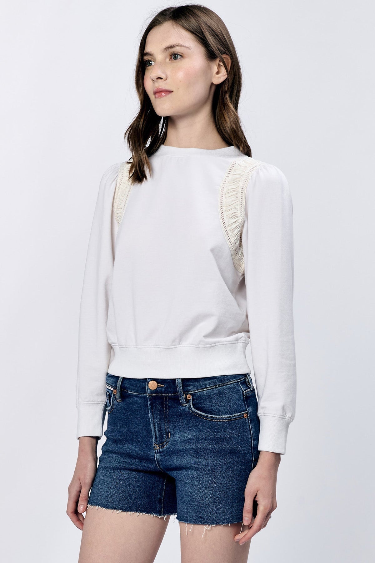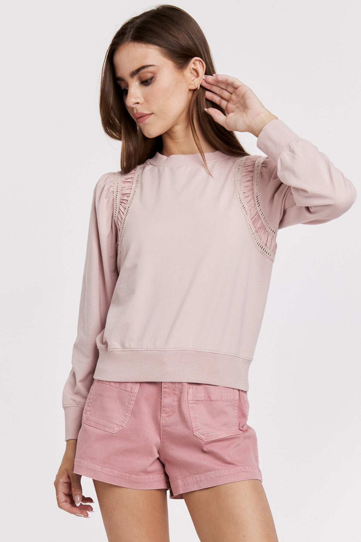 Enhance your wardrobe with the chic Cecily lace detail crew neck top, expertly blending style and comfort. Crafted for versatile outfits, this top features delicate lace detailing that adds a touch of elegance to any ensemble. Its stretchy design ensures it provides comfortable clothing for women throughout the day, whether you're at work or enjoying a casual outing.