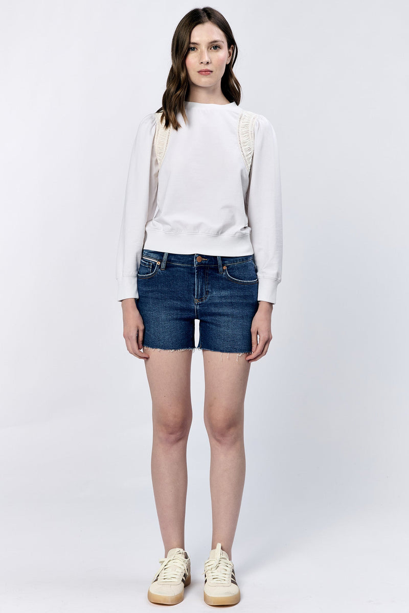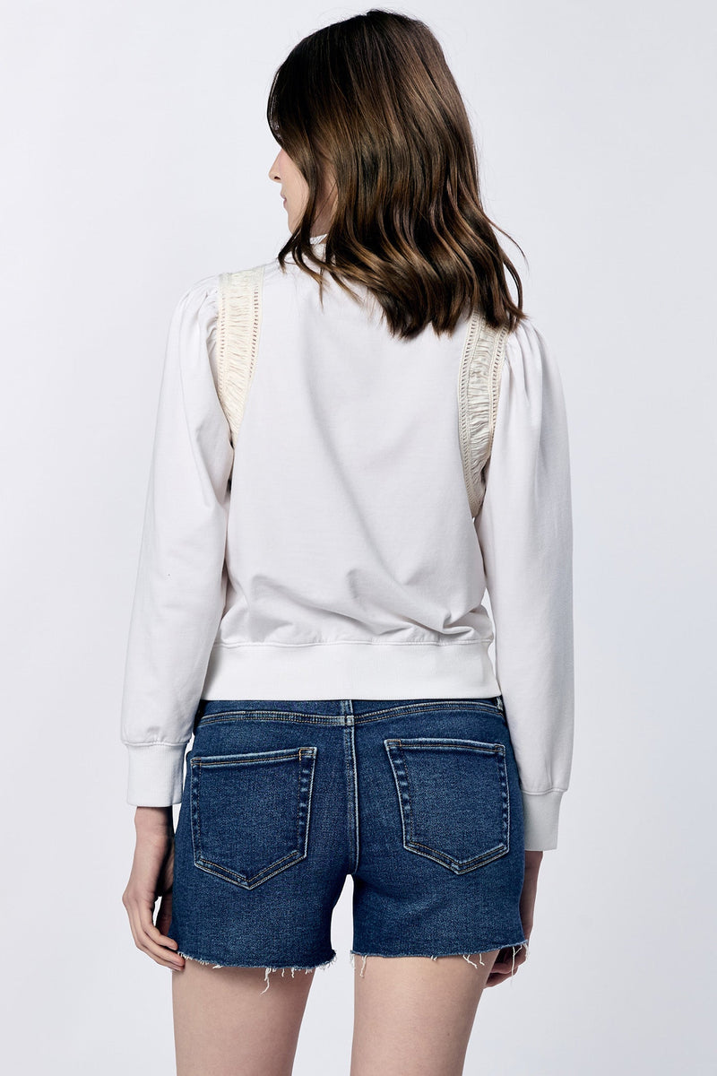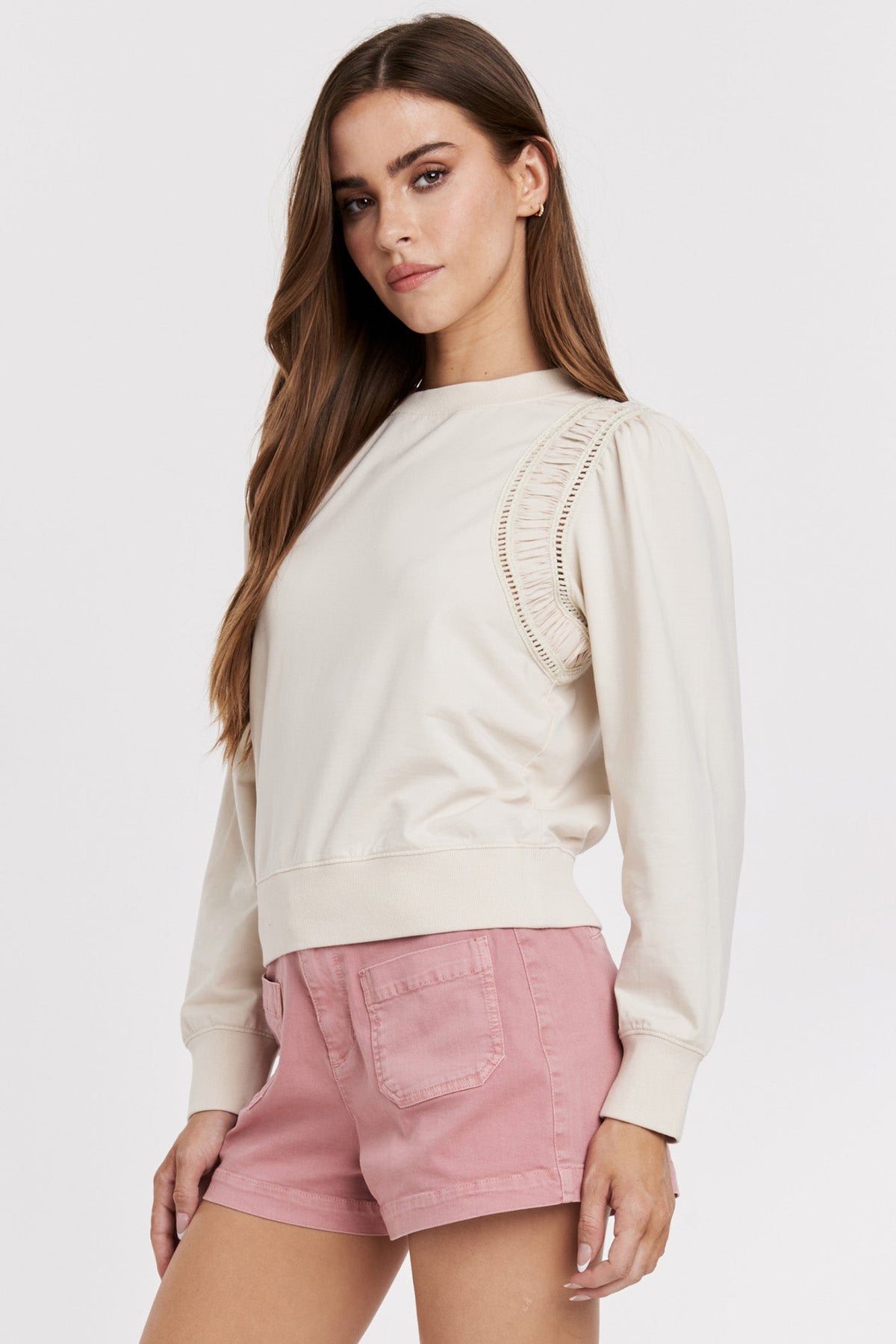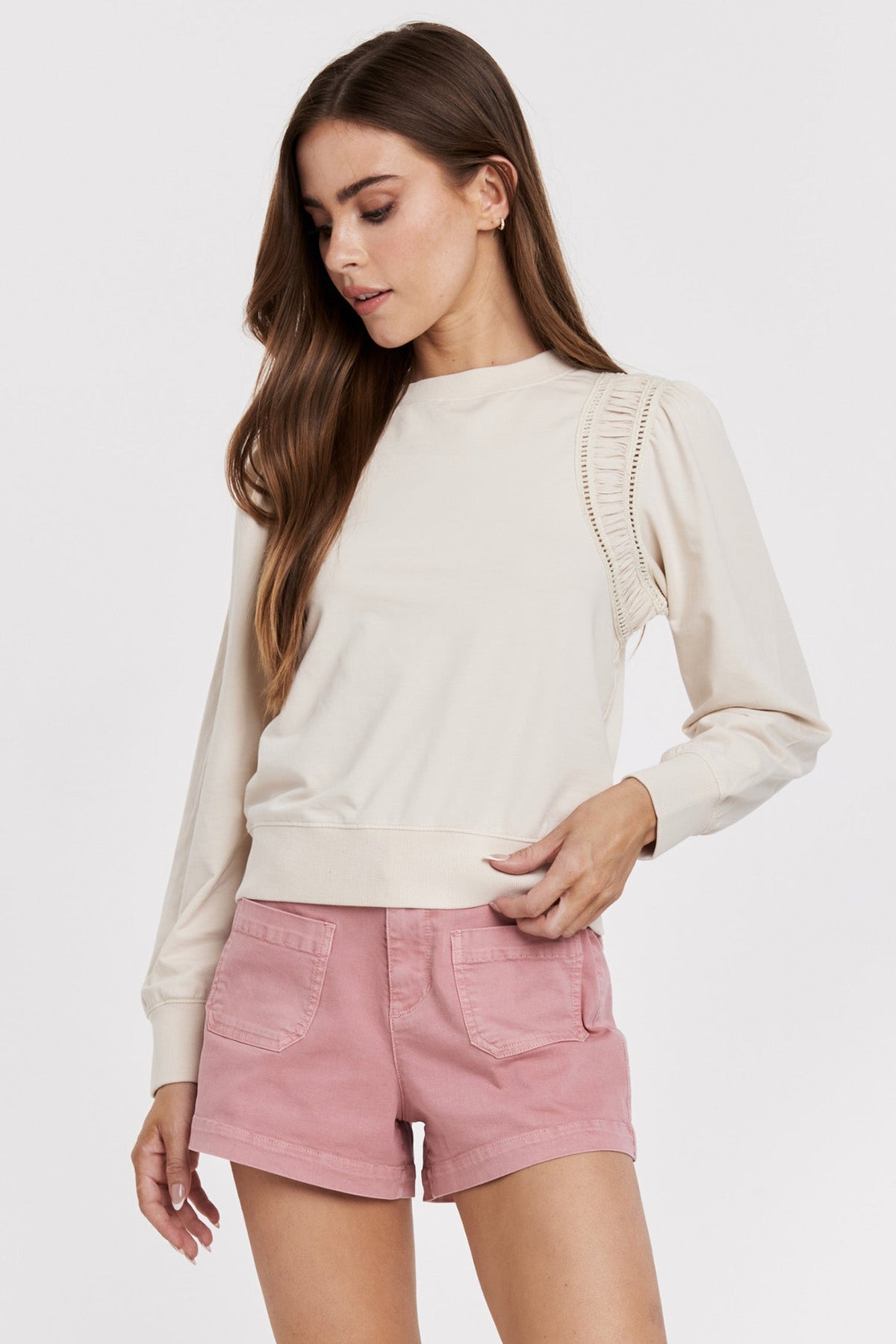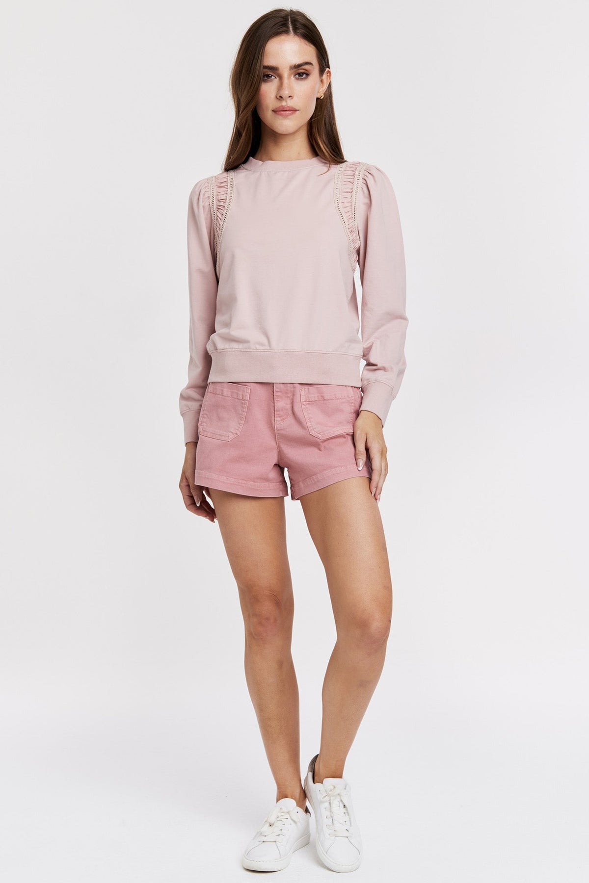 Enhance your wardrobe with the chic Cecily lace detail crew neck top, expertly blending style and comfort. Crafted for versatile outfits, this top features delicate lace detailing that adds a touch of elegance to any ensemble. Its stretchy design ensures it provides comfortable clothing for women throughout the day, whether you're at work or enjoying a casual outing.