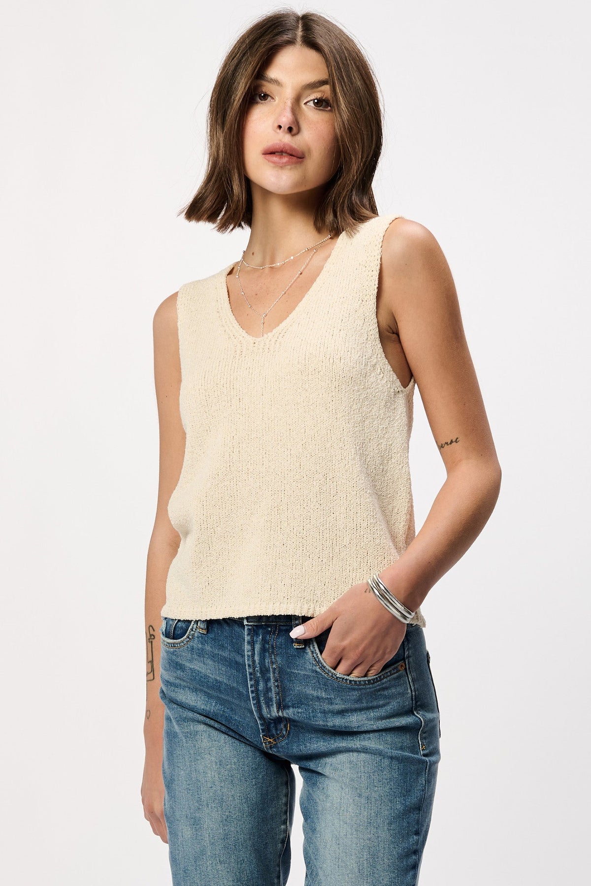 The perfect blend of style and comfort with our Celie v-neck classic fit vest, expertly crafted from a soft 60% polyester and 40% acrylic yarn blend for unbeatable wearability. This versatile piece in vintage cream offers a polished yet effortless look, ideal for layering and transitioning seamlessly between any season.