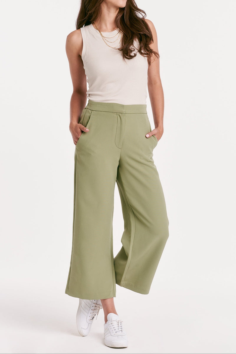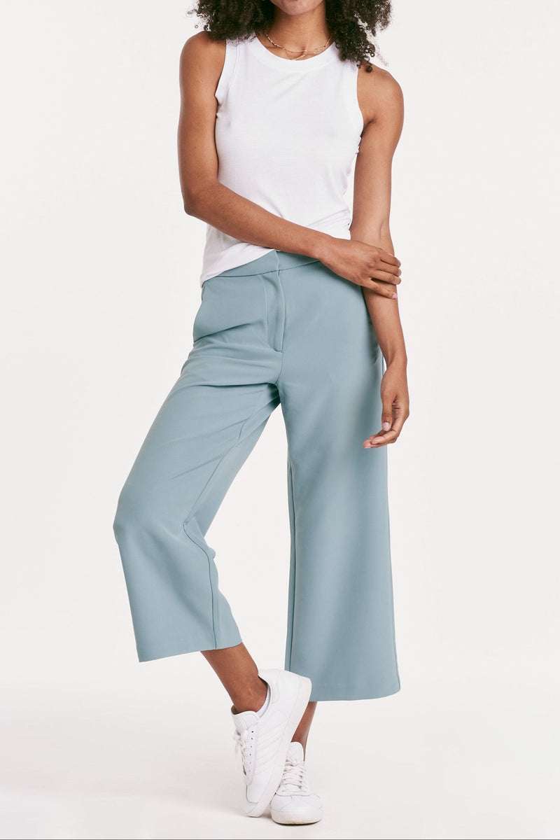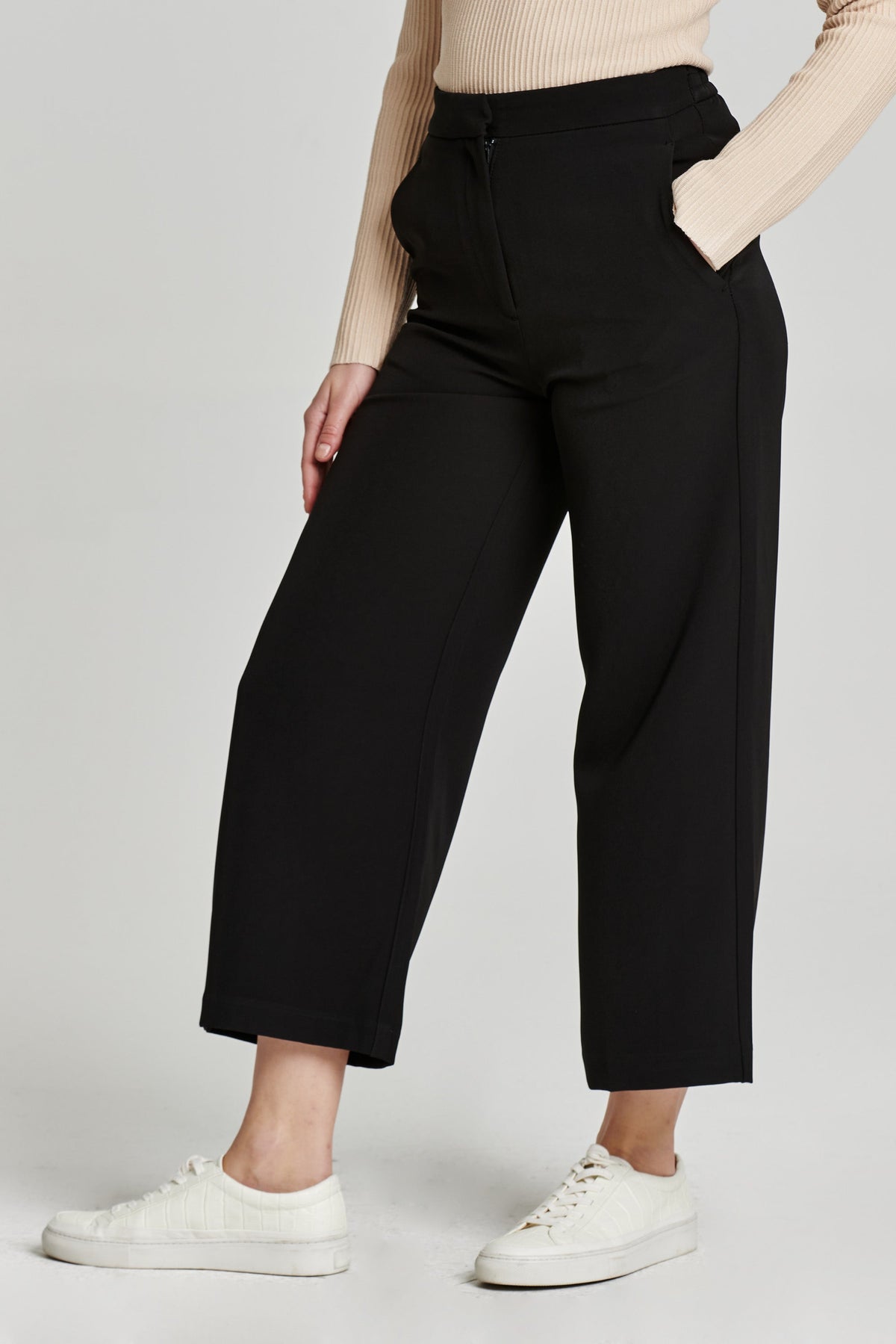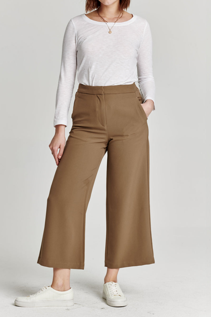 Comfortable and versatile, these cropped pants have a high rise, wide leg design with an elastic back waistband and classic trouser cut. Complete with front zipper and back pockets, they're a must-have for any lifestyle.