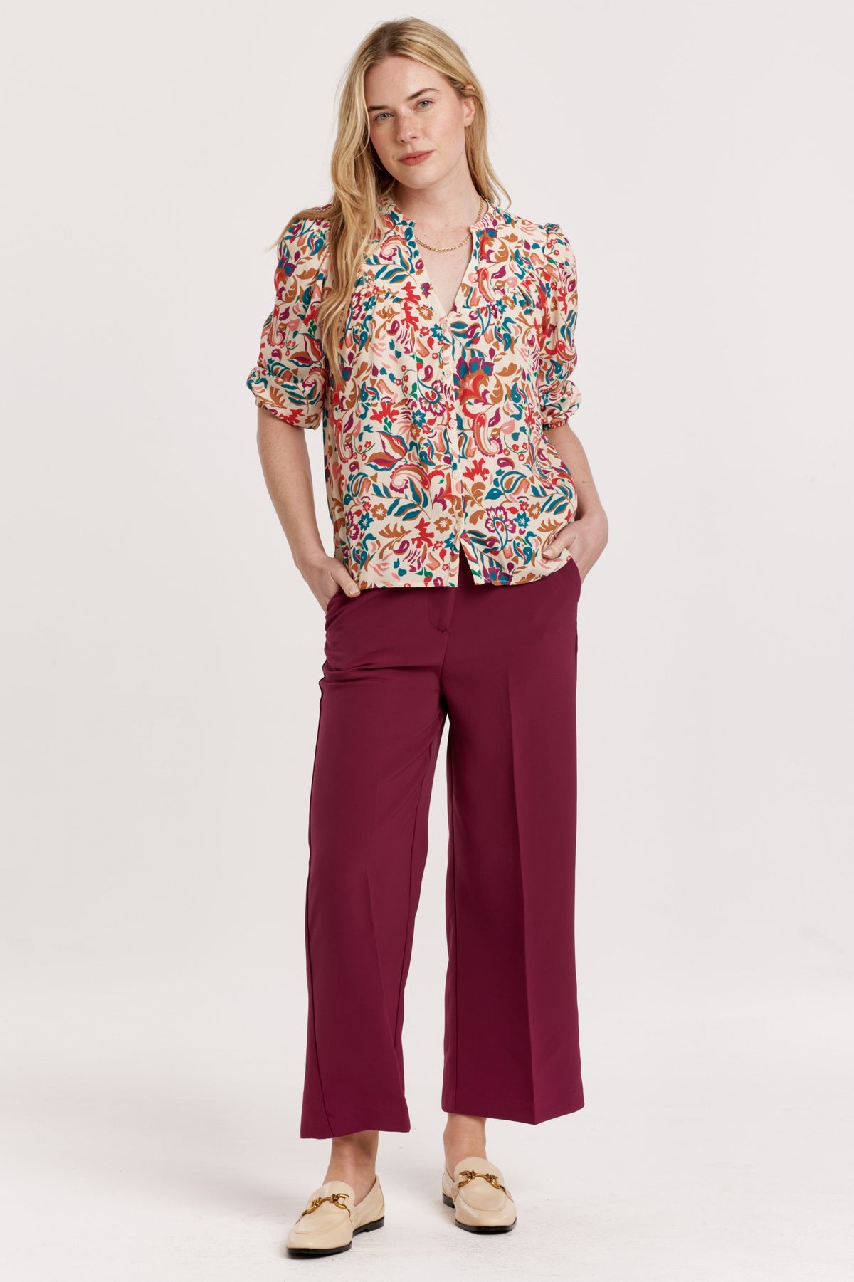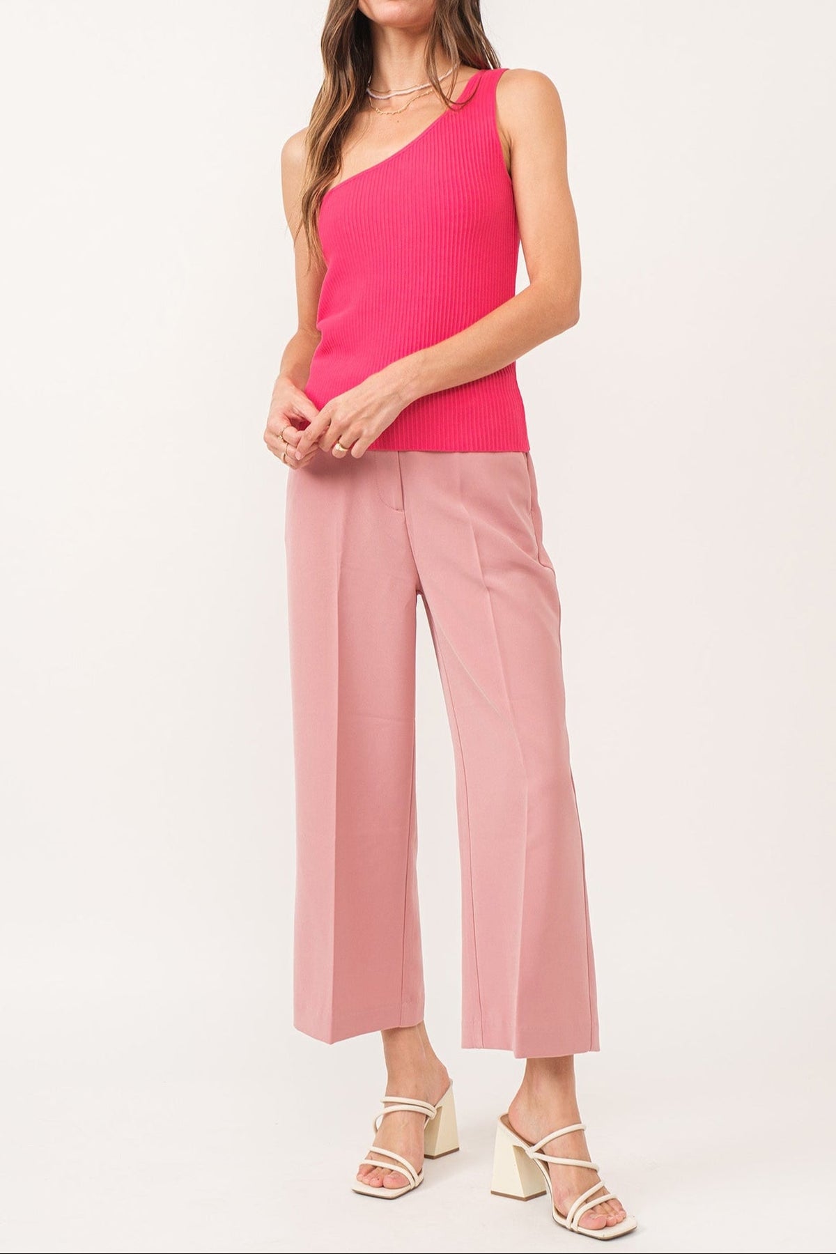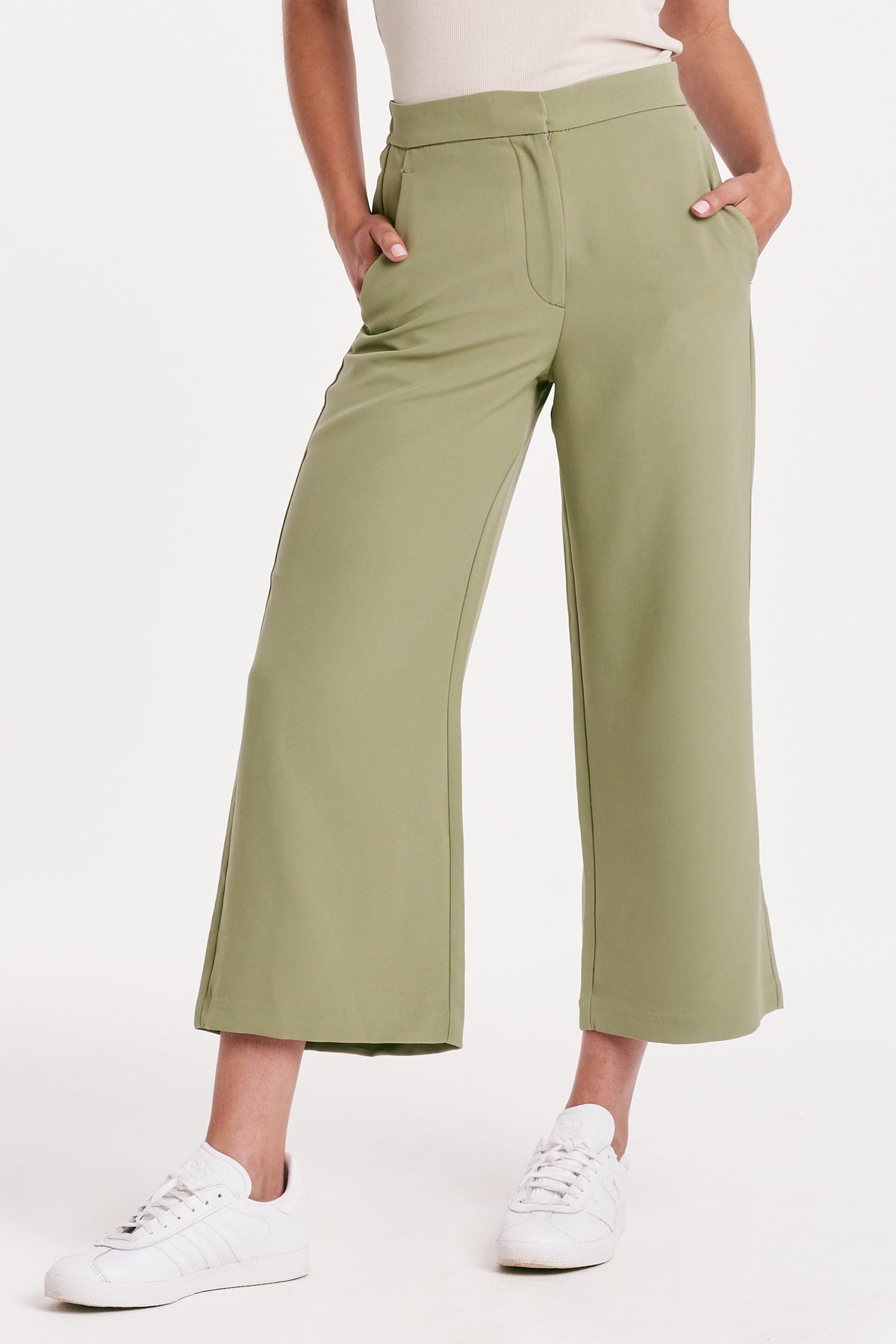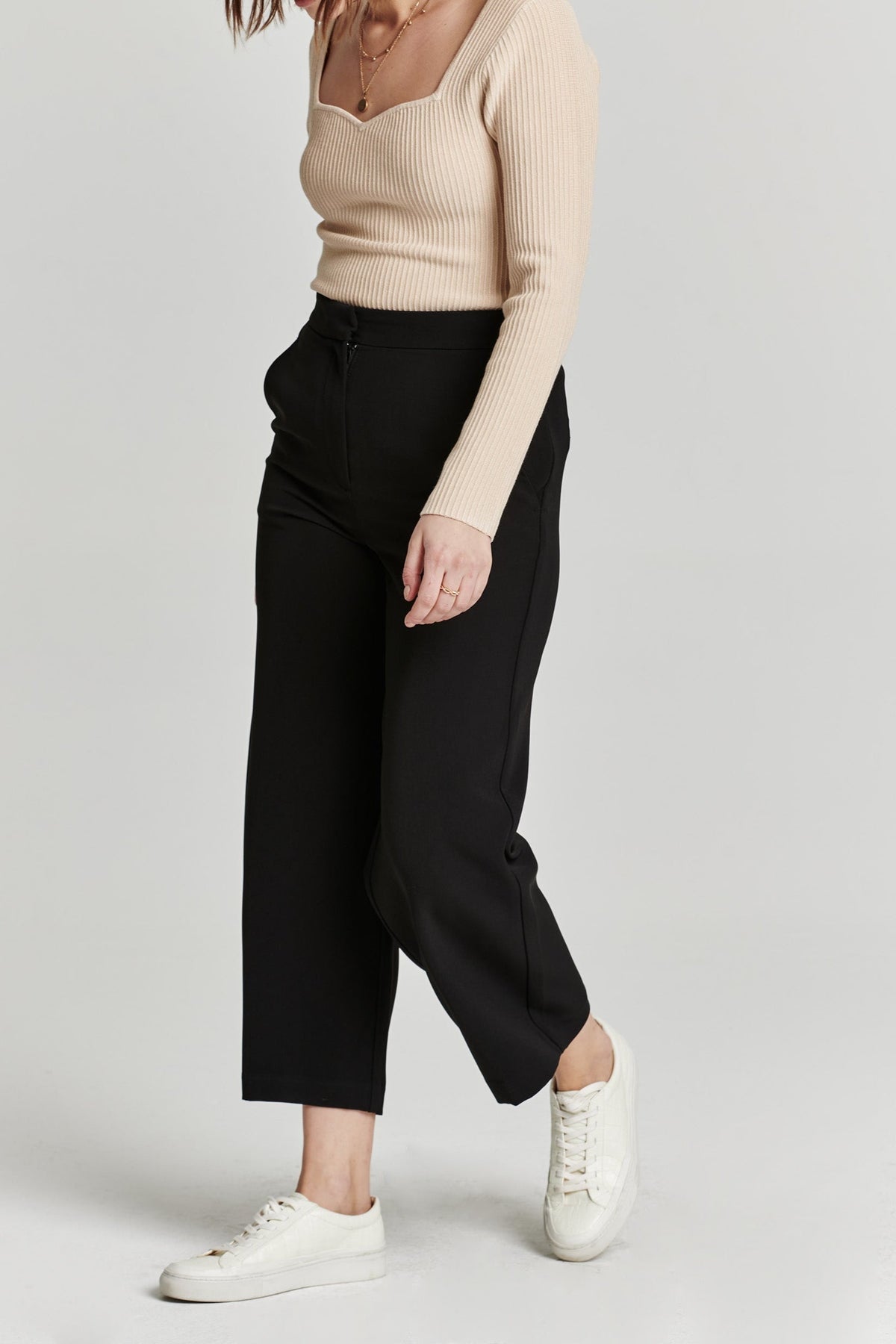 Comfortable and versatile, these cropped pants have a high rise, wide leg design with an elastic back waistband and classic trouser cut. Complete with front zipper and back pockets, they're a must-have for any lifestyle.