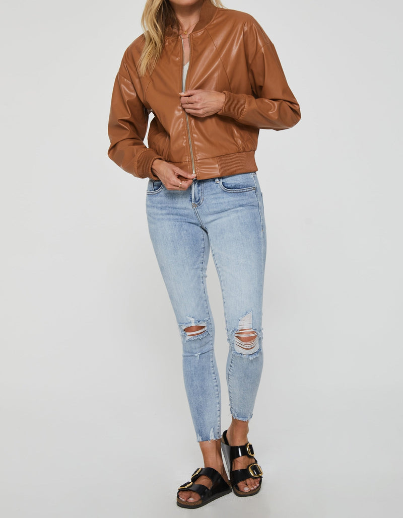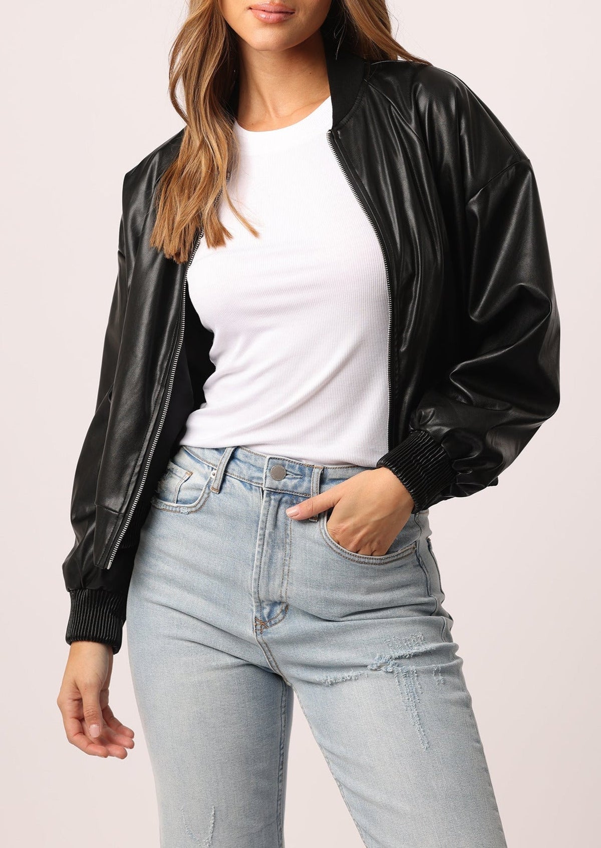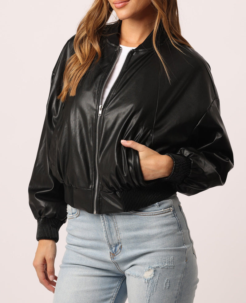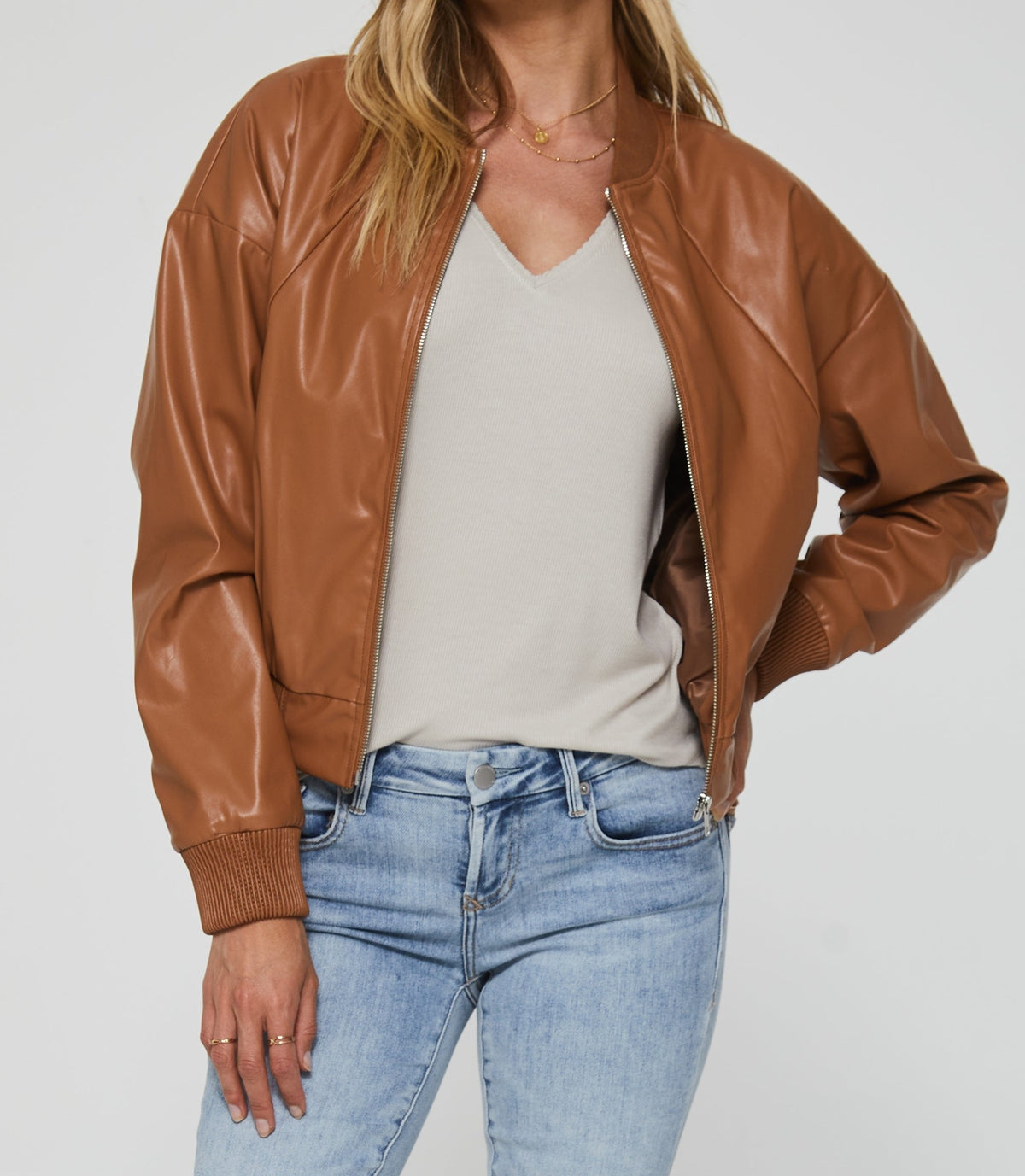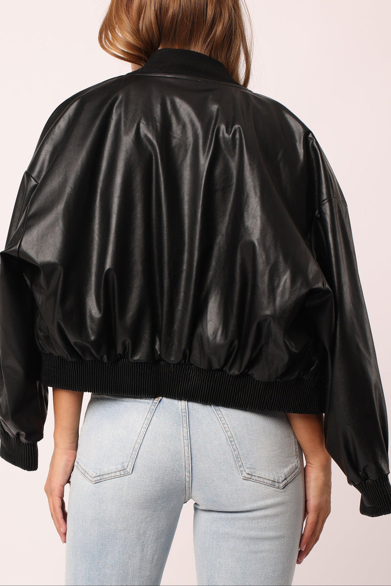 Drop shoulder bomber jacket. Perfect for those nights when you wanna lookcute but still be warm. Solid color knit on relaxed fit.