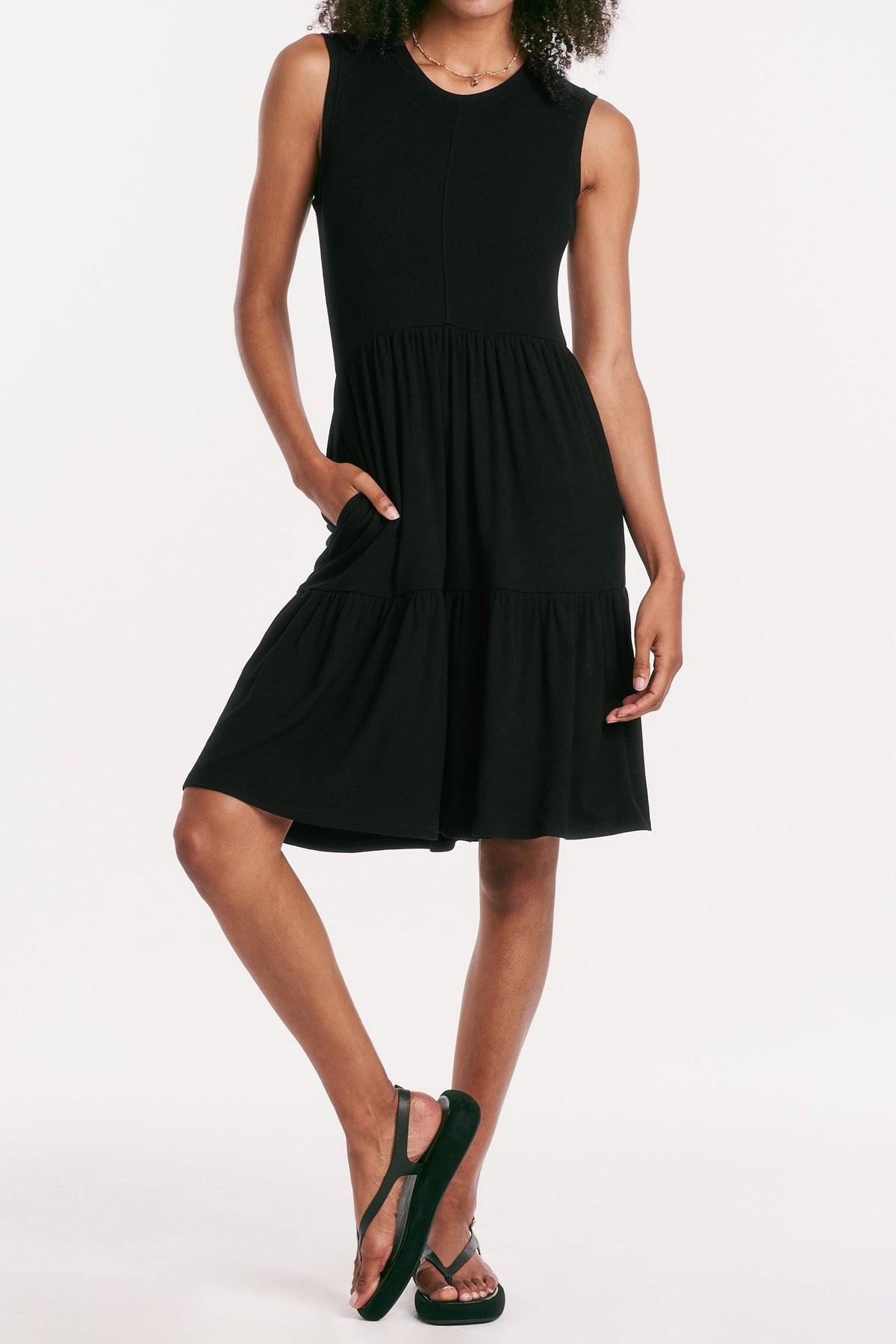 Treat yourself to uncompromising coziness and style now in our HARLEY RIB DRESS. This midi dress boasts a multi-tiered skirt and is sleeveless with a shoulder seam, neck, and armhole band. In a solid color knit and a standard fit.