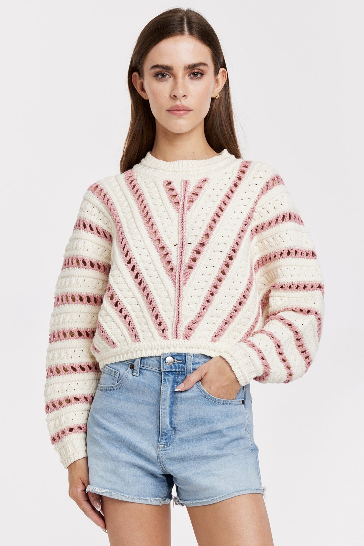 Unparalleled style and comfort with the HAVEN dolman sleeve crochet sweater in a charming color combination. Featuring a chic dolman sleeve design crafted from a soft blend to ensure comfort and ease. Ideal for layering while offering remarkable versatility and functionality in your wardrobe.