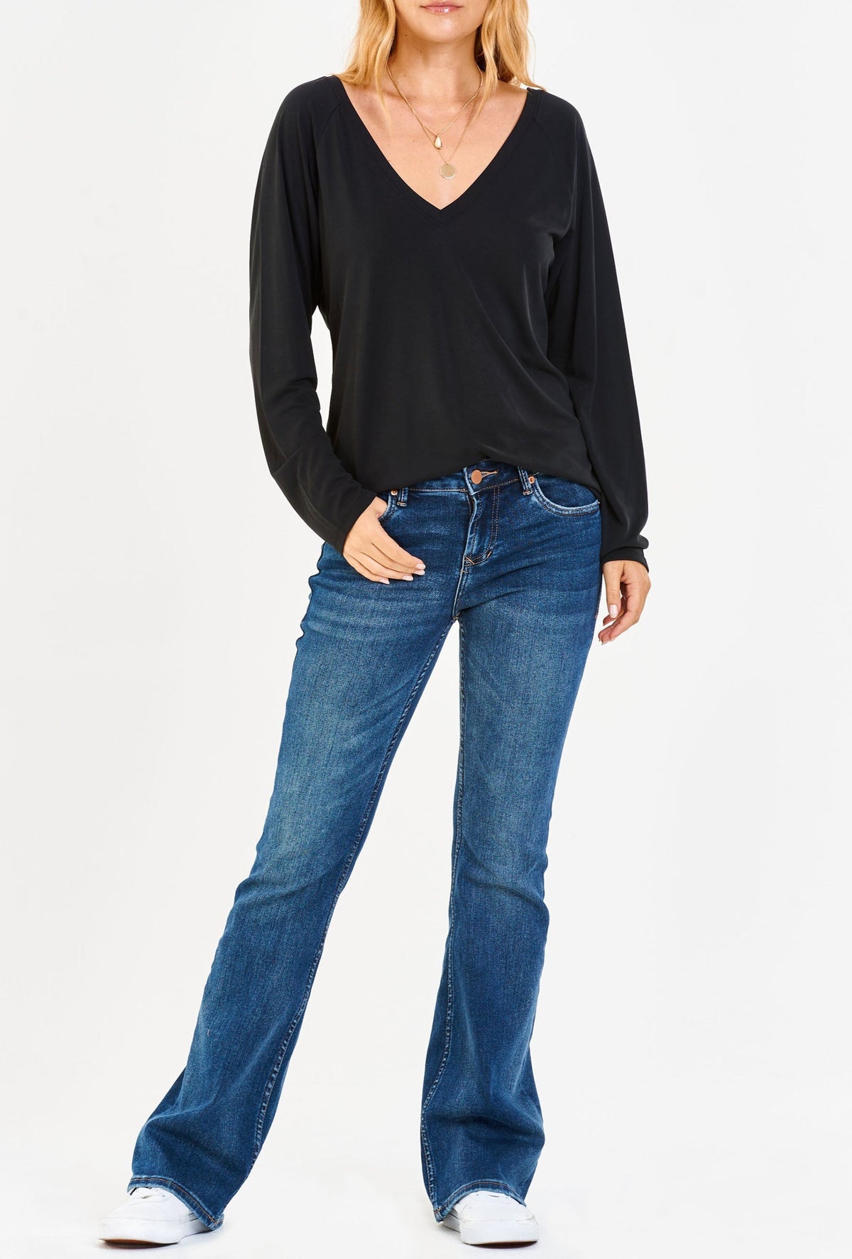 Unleash your bold LIV DOUBLE V-NECK TOP! Embrace comfort and confidence with this long sleeve top that will make you the life of the party, no matter where you go. Featuring a double v-neck design and a solid color knit, get ready to make a statement in this standard fit piece.