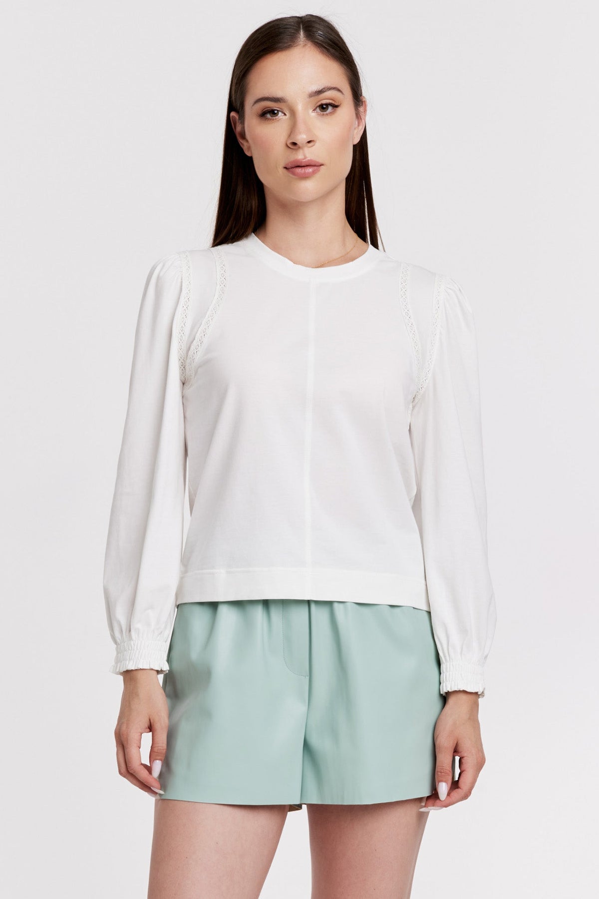 The Lucinda long sleeve top is a versatile outfit is perfect for any occasion, offering both elegance and ease. The top boasts intricate lace details along the sleeves is a sophisticated touch that elevates any look. This chic piece seamlessly transitions from day to night, making it a staple in any wardrobe.