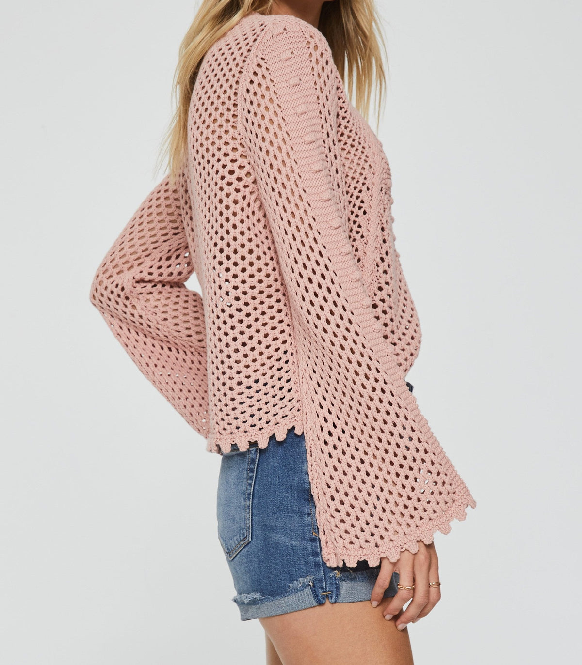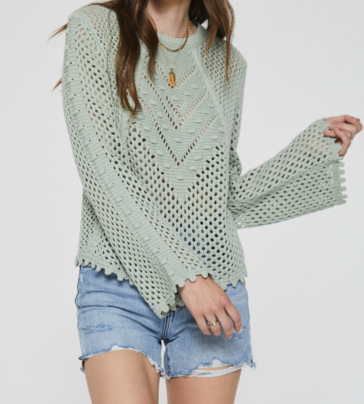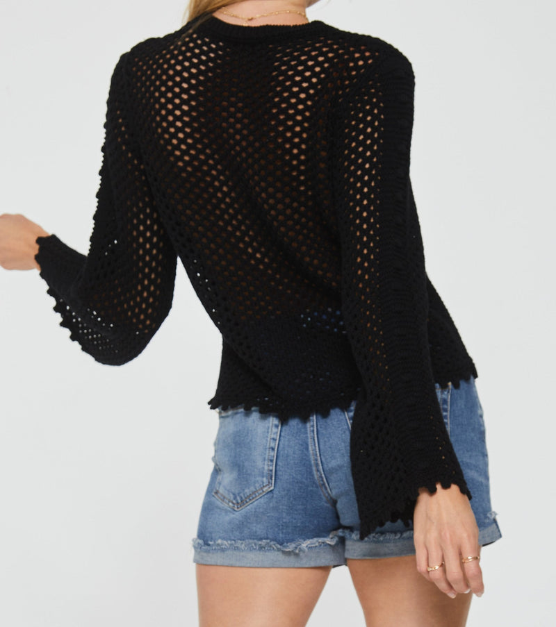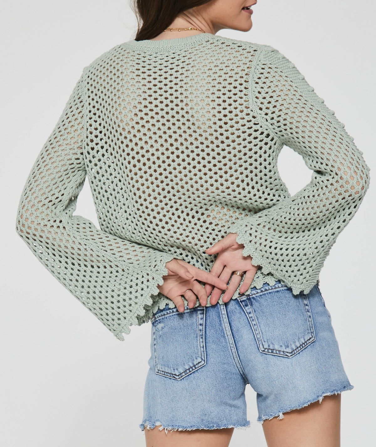 This MERYL SWEATER features delicate pointelle eyelet details with a crew neck, mesh embroidery, and long flare sleeves. Its relaxed fit and solid color yarn make it a perfect pairing for any style, adding a touch of cuteness and on-trend vibe to your look.