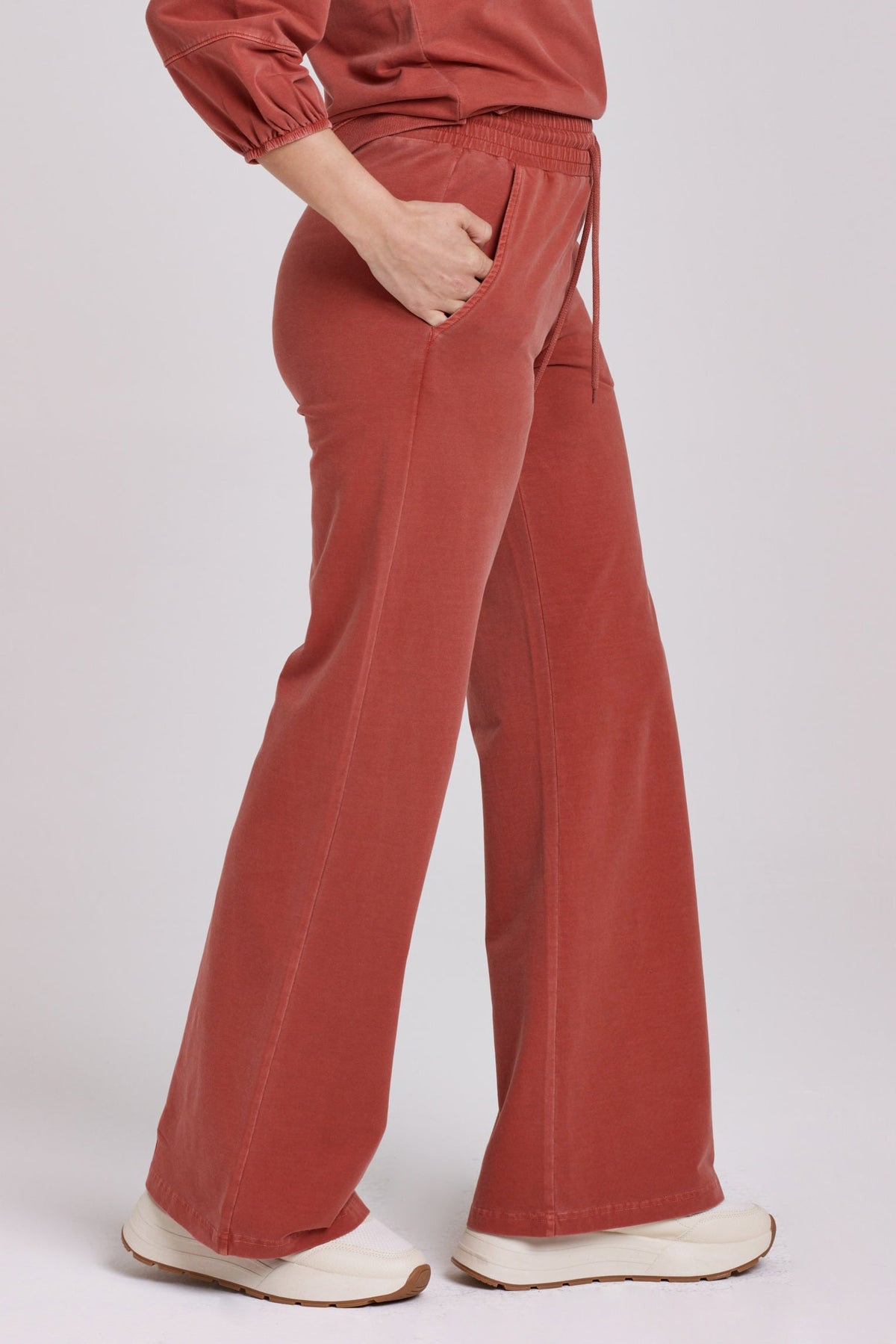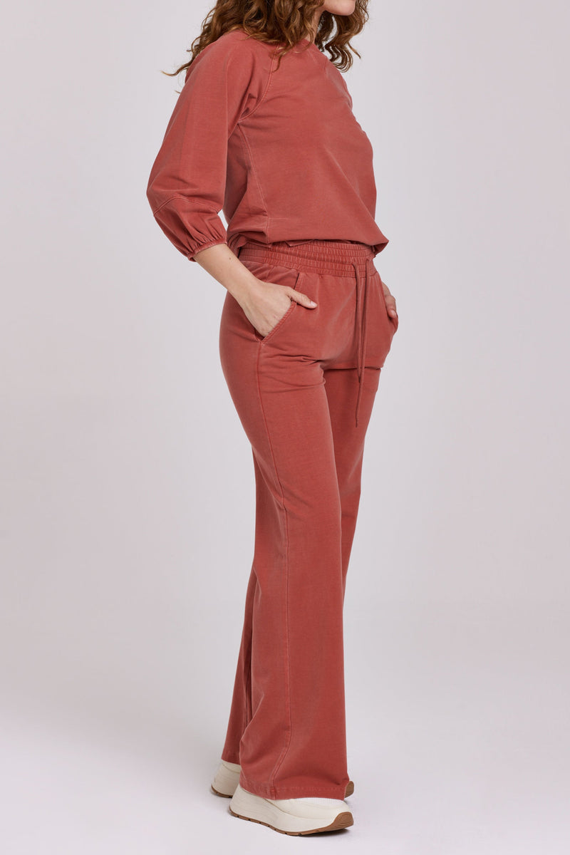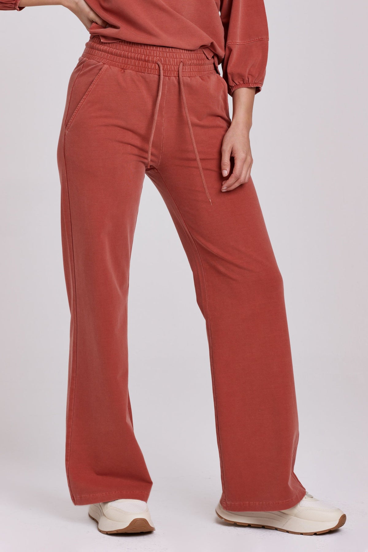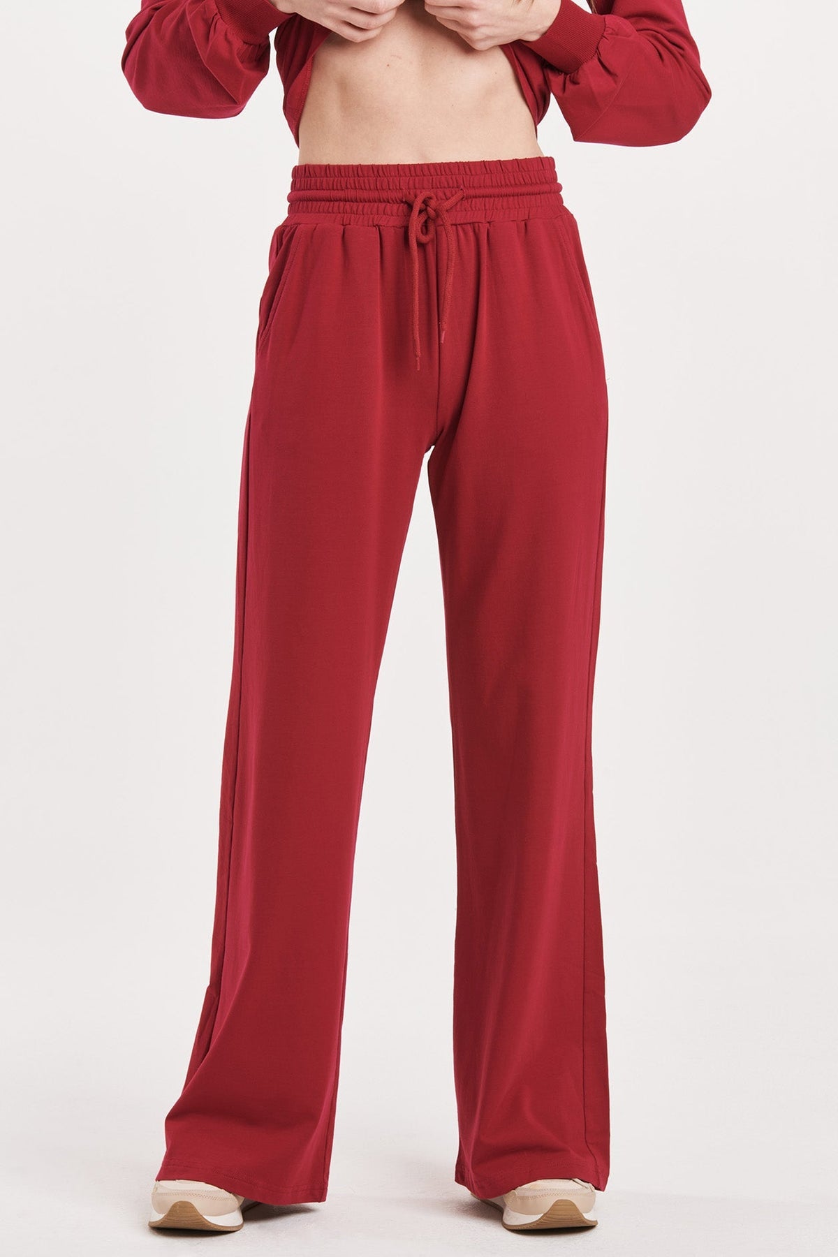 Stay comfortable in the QUINCY PANT in french terry. With a high-rise, elastic waistband and wide-leg silhouette, these pants are perfect for relaxation. From day to night, they offer effortless fashion and all-day comfort.