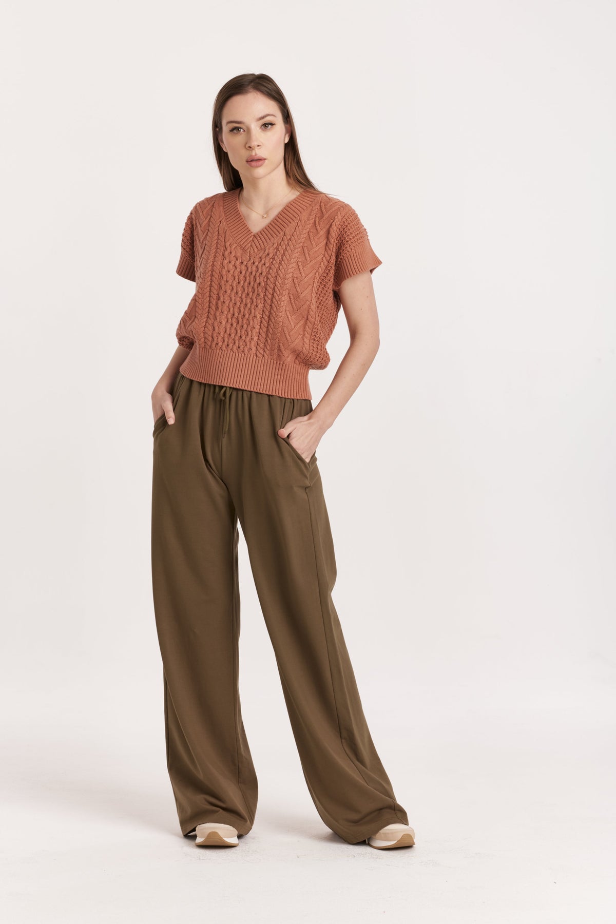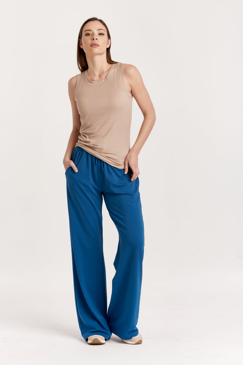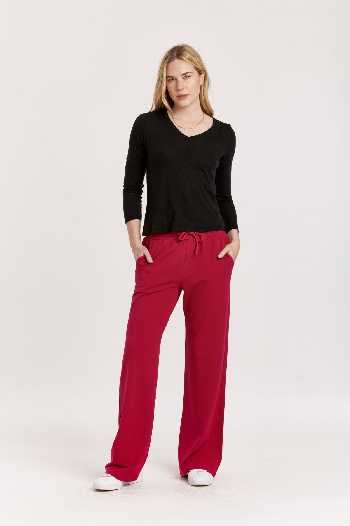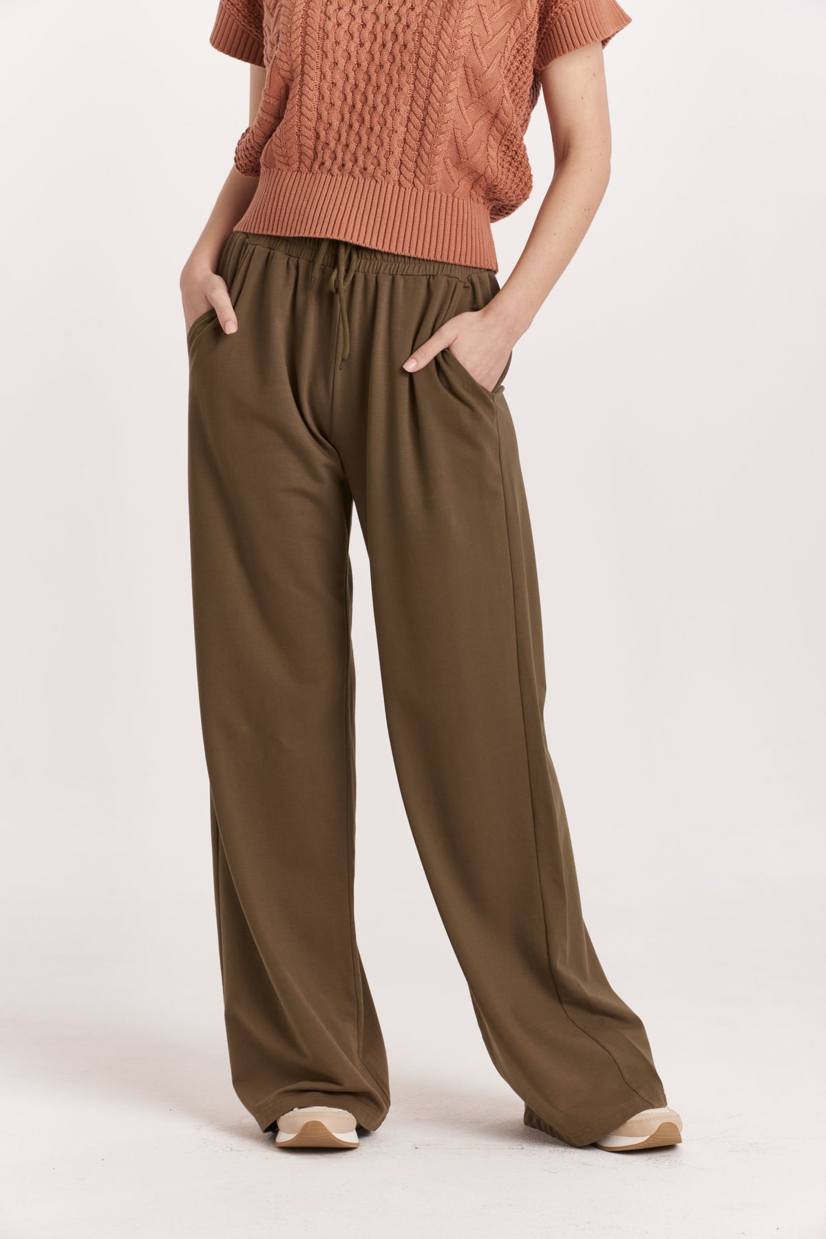Stay comfortable in the QUINCY PANT in french terry. With a high-rise, elastic waistband and wide-leg silhouette, these pants are perfect for relaxation. From day to night, they offer effortless fashion and all-day comfort.