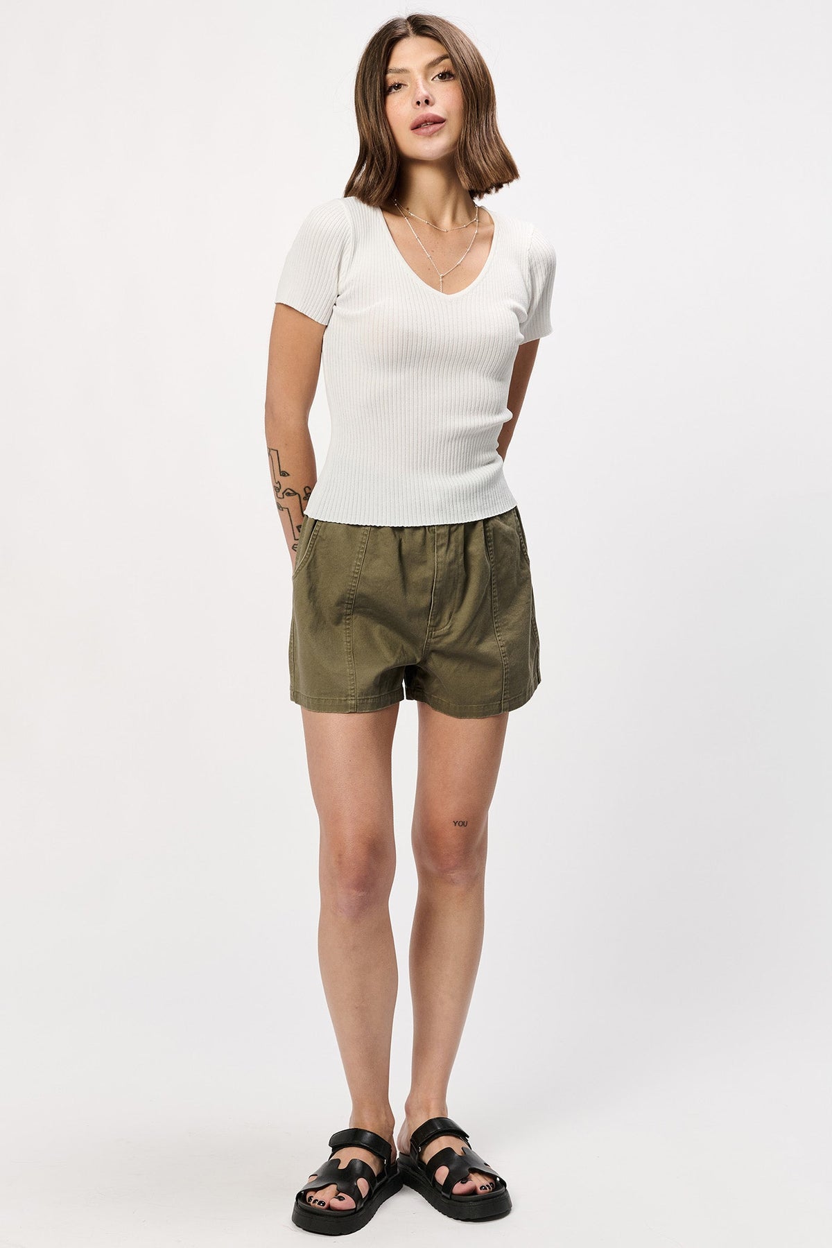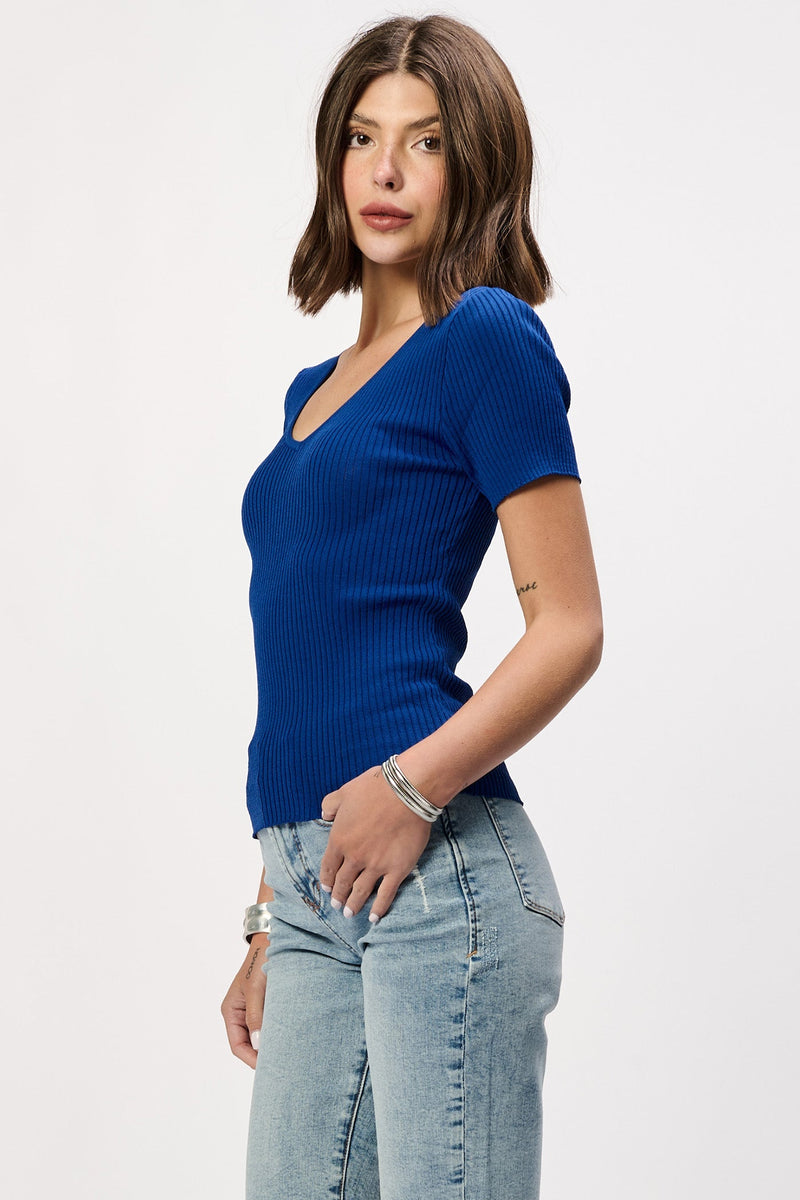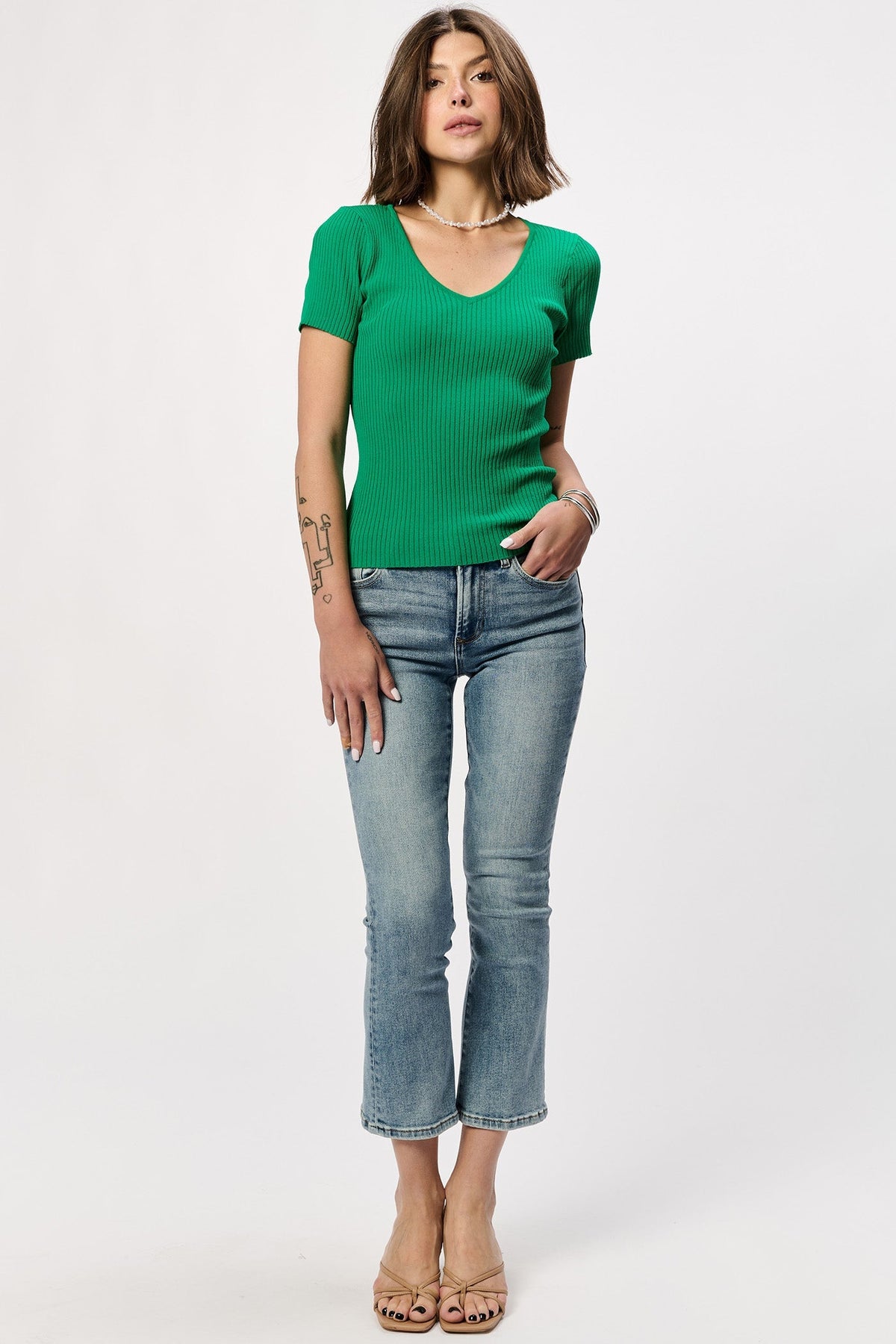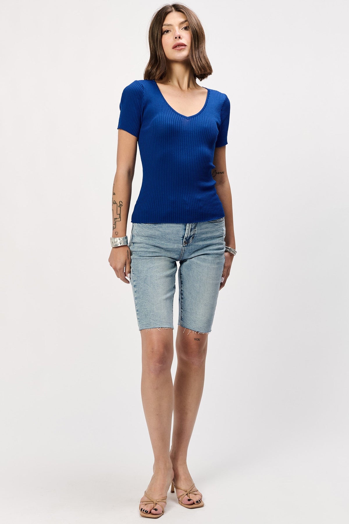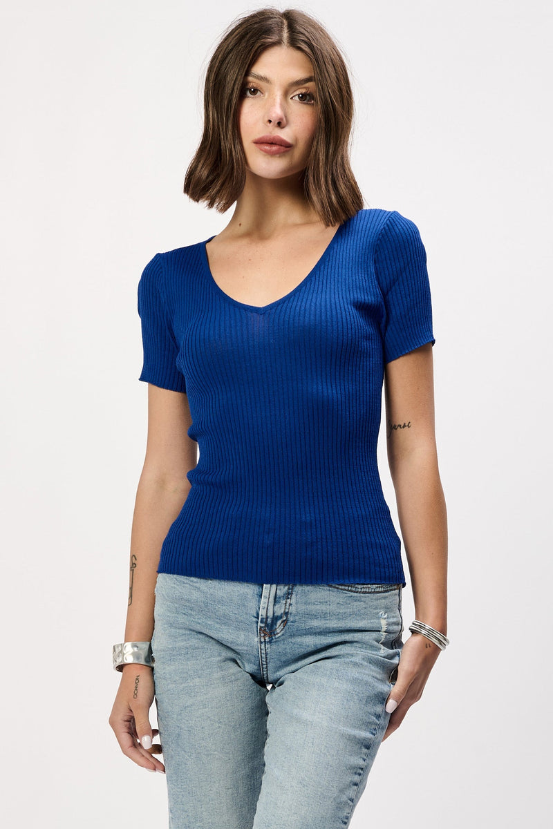 Effortless elegance with the Rhiannon rib top, designed with a chic short sleeve and flattering V-neck silhouette. This versatile slim fitting silhouette is made from a premium blend of 63% viscose and 37% nylon, offering a soft and breathable fit for comfort that feels luxurious.