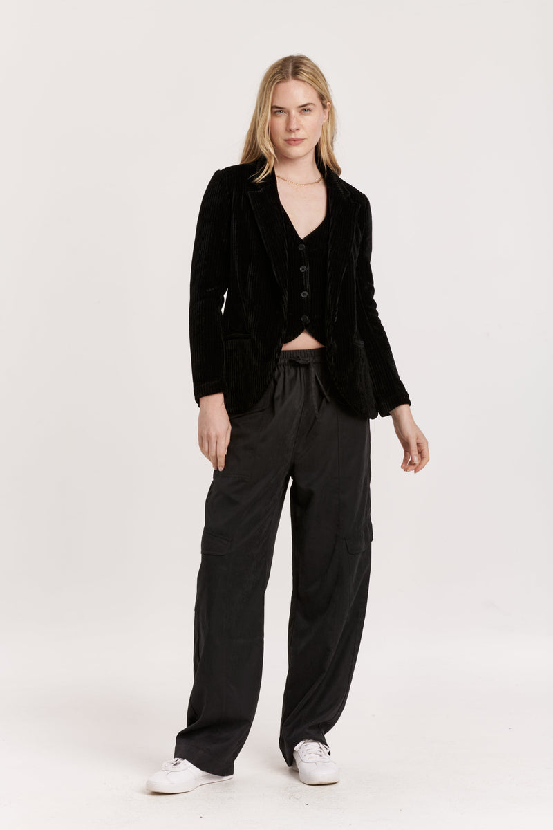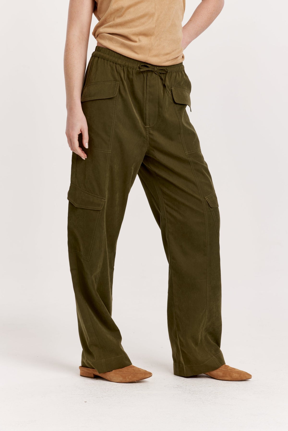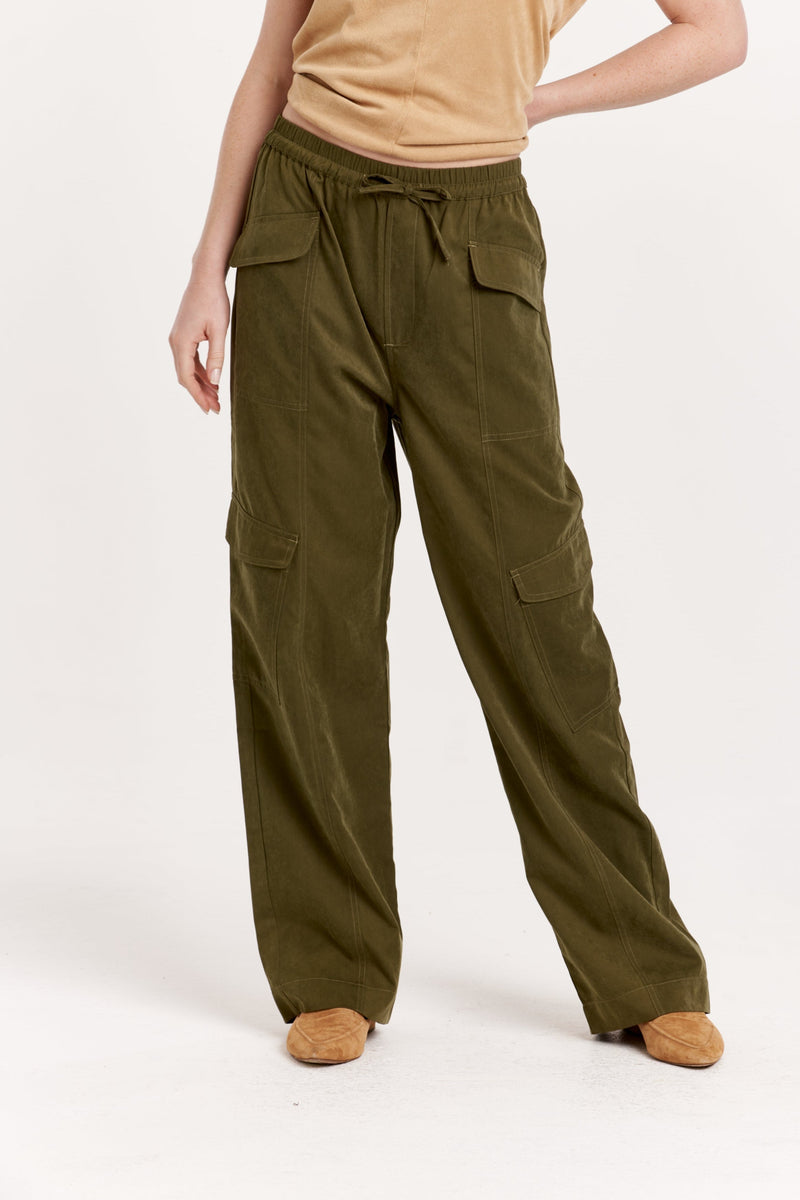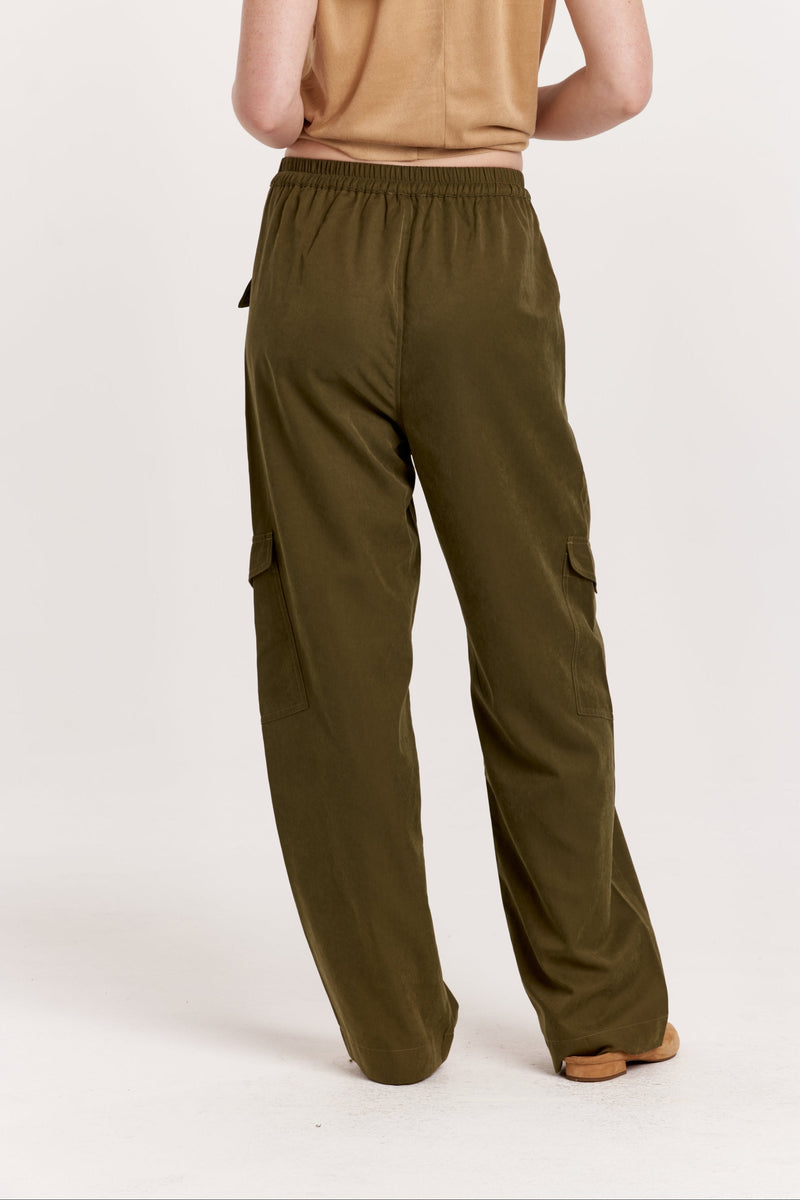 Relish the convenience of an elastic waistband with a drawstring, along with a side pouch pocket and utility flap. Designed to be sleek and functional, these cargo pants are perfect for any lifestyle! The relaxed fit and solid color make for a versatile addition to your wardrobe.
