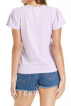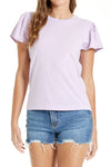 Crochet lace top in slubby material, crew neck finished with flutter sleeveless. Solid color knit on standard fit, styled with crochet lace at armhole.