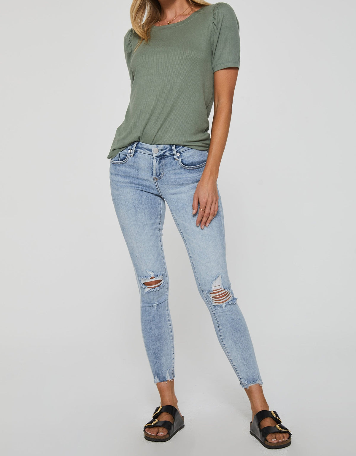 Complete your look with our versatile SIENA RIB TEE. This short sleeve crew neck top pairs perfectly with our pants, making it the ideal outfit for any occasion. Crafted from high-quality solid color knit, this top offers a comfortable and flattering standard fit.
