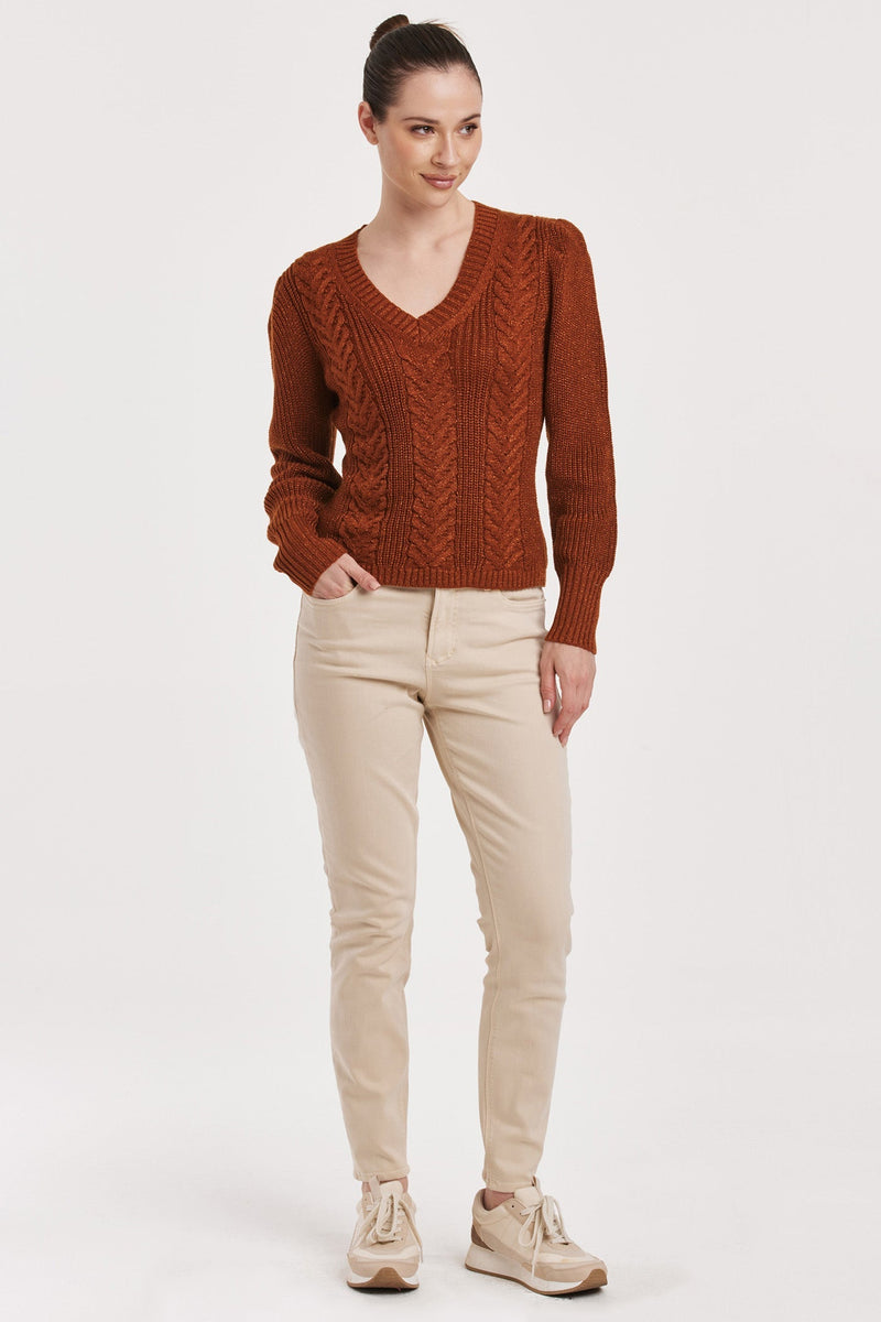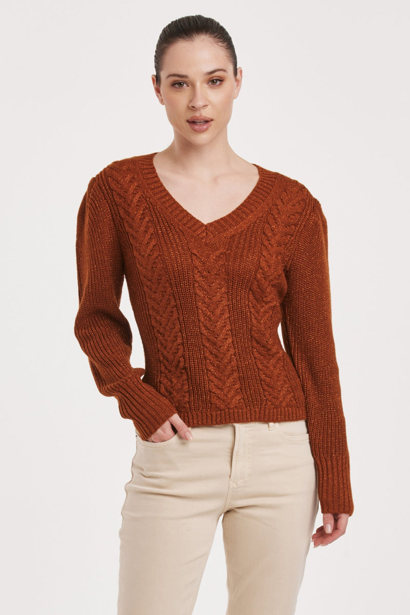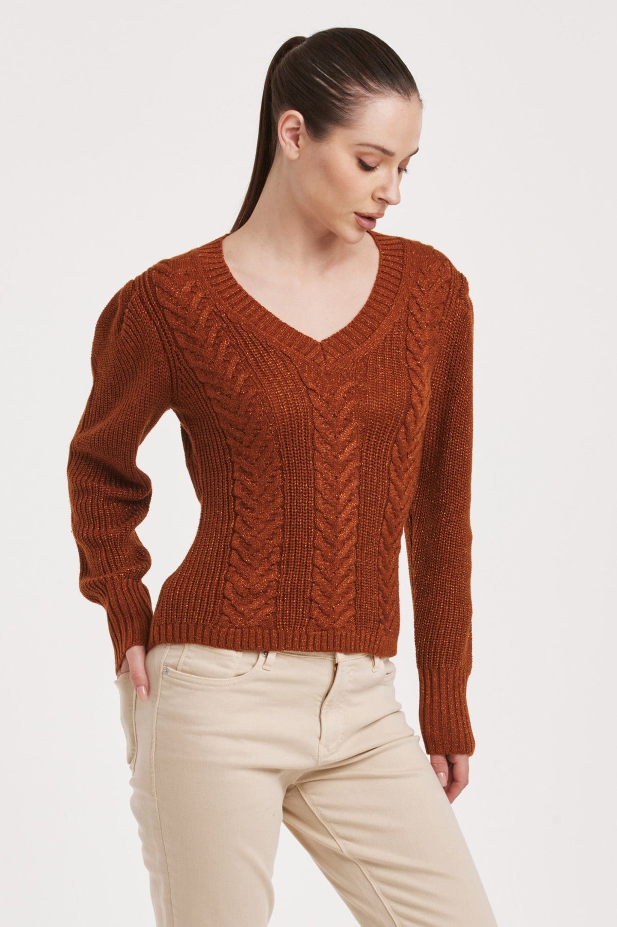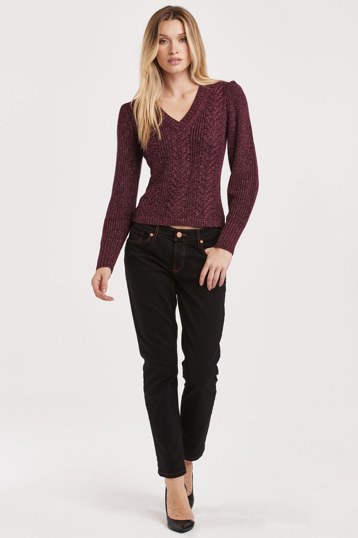 Accent your fashion wardrobe with the THALIA vneck sparkle sweater in seasonal hue. Designed for both style and practicality, this versatile outfit features a flattering V-neckline and long sleeves with a subtle sparkle detail that adds a touch of glamour to any look.