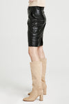 Bringing sophistication and exclusivity together, the VENUS vegan leather skirt features a zip fly, button waistband, and belt loops. With side pockets and back dart lift support, it boasts seam details and is finished with a solid color pleather for a luxurious touch. Perfect for any occasion, let's rock this on-trend leisure piece.